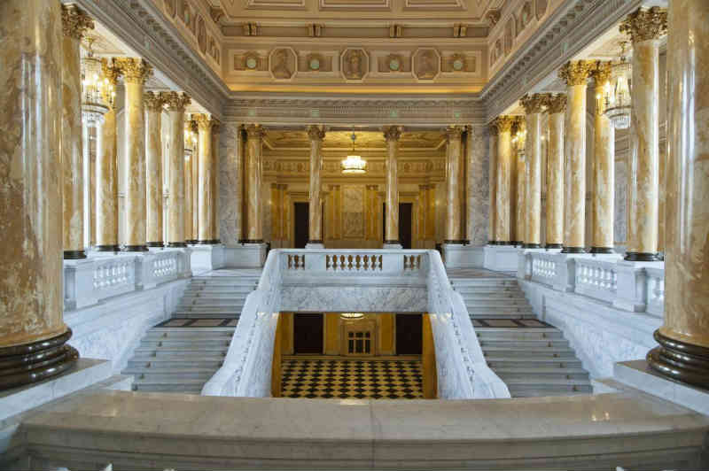 In acest context, nu este de mirare ca piatra naturala, respectiv marmura, a fost aleasa pentru a crea maretia demna de un asemenea loc. Piatra naturala a fost si continua sa fie materialul somptuozitatii, al claselor aristocratice si al templelor inca de la descoperirea ei ca material de constructie. Luciul suprafetei si omogenitatea cromatica a celor mai multe marmure se vor potrivi mereu salilor inalte, fastuoase, care reprezinta institutii emblematice, cu rol major in functionarea societatilor, natiunilor, variatelor forme de guvernare.