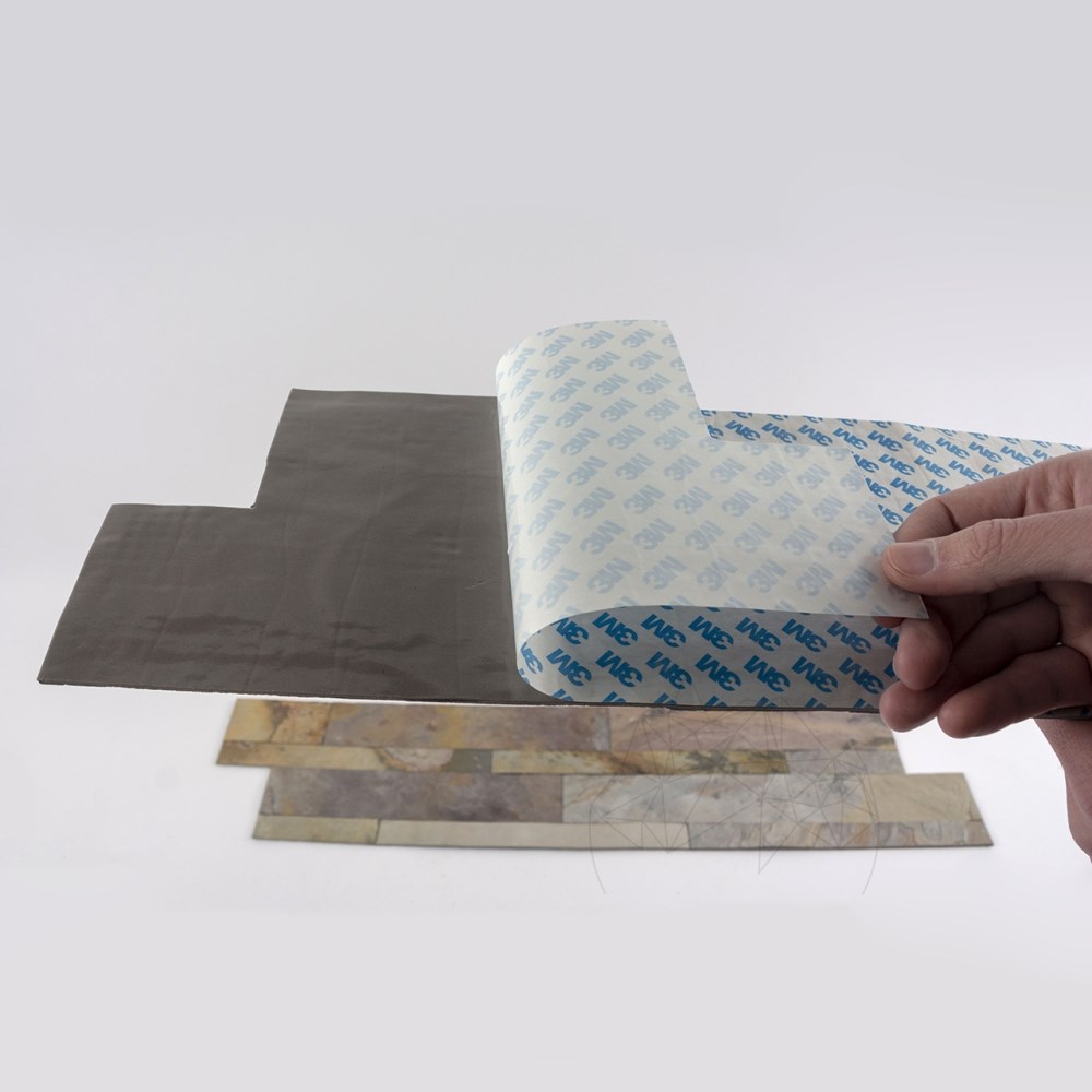 Descopera acum panelurile din ardezie flexibila pentru proiecte spectaculoase, dar simplu de realizat. Avand o dimensiune de 60 x 15 cm, panelurile din ardezie flexibila se pot monta foarta usor in spatii precum baia, bucataria, living, semineu, inclusiv spatii umede, si mai ales iti poti imbraca piesele de mobilier si alte suprafete atipice. Acest model este cu 3M pe spate. 3M este o banda adeziva puternica ce se aplica pe spatele panelurilor, ceea ce inseamna ca nu vei mai avea nevoie de adeziv pentru montajul pietrei.