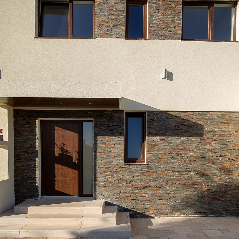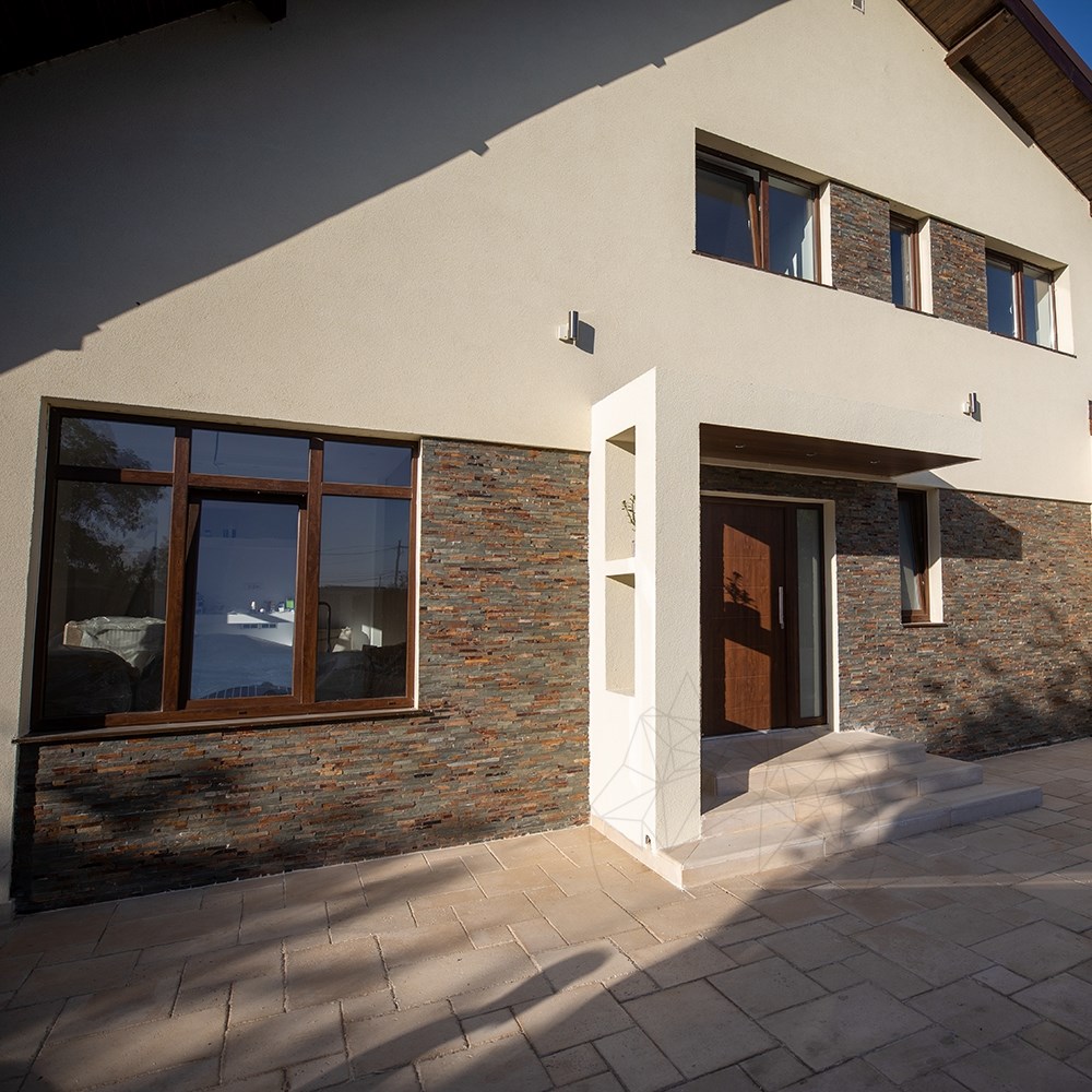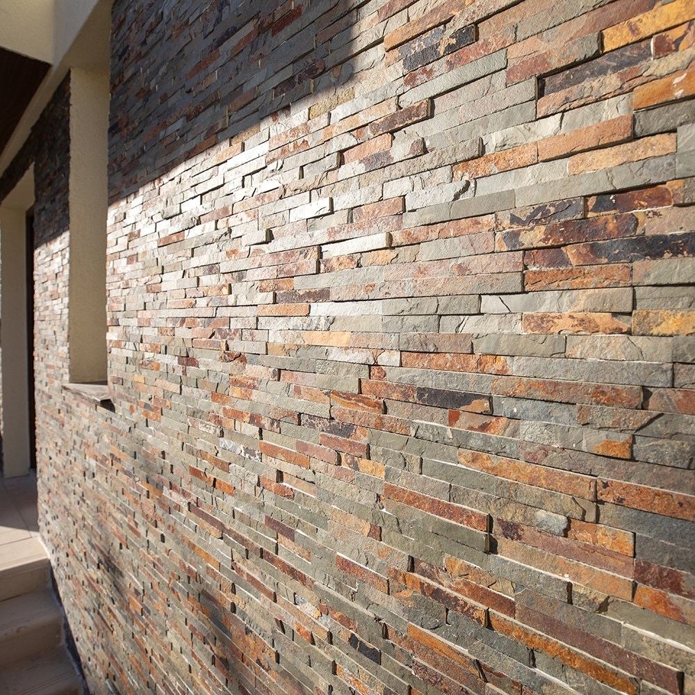 Panelul Multi Mini din ardezie, cu dimensiuni de 10 x 36 cm, este definit de un colorit eclectic si un finisaj sofisticat. Orice spatiu va capata o nota in plus de rafinament cu ajutorul acestui model de paneluri. Trasaturile specifice pietrei naturale sunt scoase in evidenta prin finisajul brut si textura ardeziei. Acest tip de ardezie se poate utiliza doar pentru placarile verticale, atat in proiectele de interior, cat si pentru cele de exterior. In interiorul casei, panelurile se pot monta pe peretele din living, dormitor, bucatarie, spatii umede (baia) sau iti poti imbraca semineul casei. Pentru exteriorul casei o poti folosi la constructia gardurilor, soclurilor sau a fatadelor. Rezista foarte bine la orice schimbare de temperatura si vreme si se intretine foarte usor, atat la interior cat si la exterior.