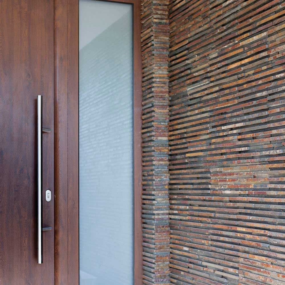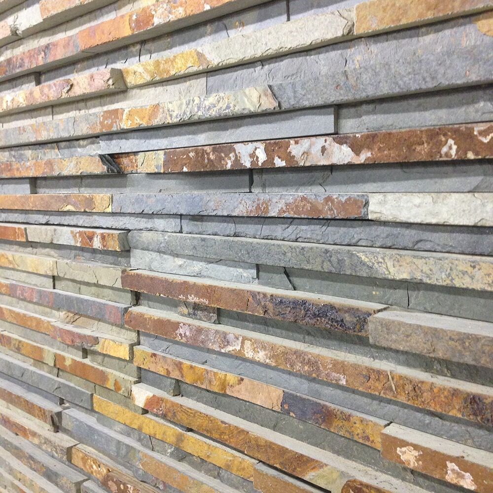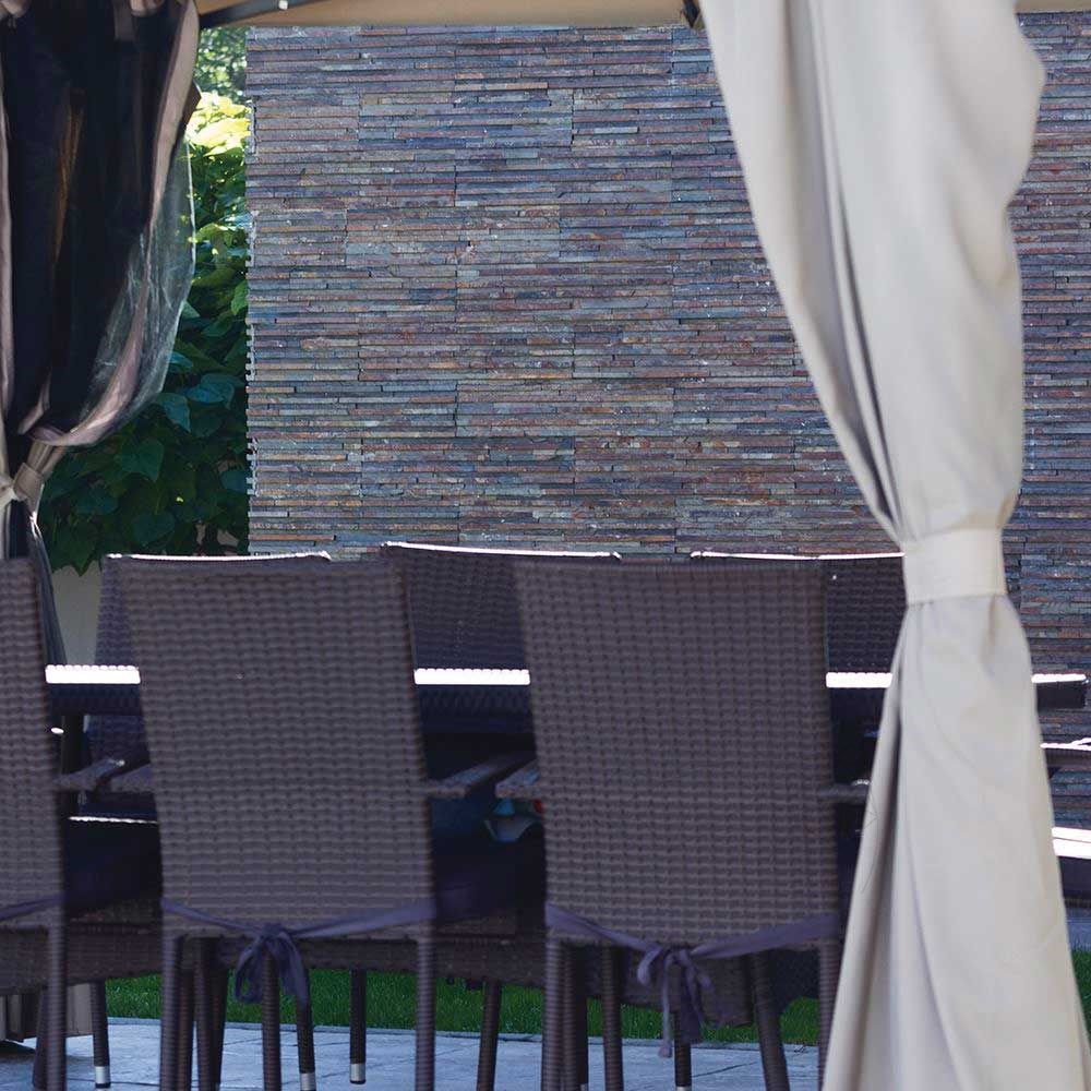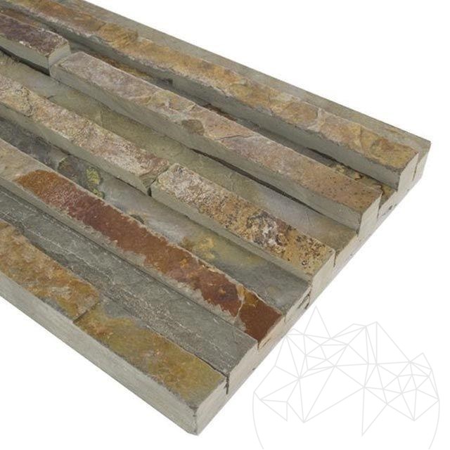 Ardezia este un material foarte apreciat , nu doar pentru durabilitatea sa, ci si pentru frumusetea naturala care se afla in nuantele vibrante si imprevizibile. Culorile sale variaza de la albastru deschis, nuante de gri si galben, pana la tonuri de pamant – o variatie infinita care duce la diversitatea modelelor si formelor placilor. Panelul Multi Stripes din ardezie, cu dimensiuni de 15 x 60 cm, este definit de un colorit eclectic si un finisaj sofisticat. Orice spatiu va capata o nota in plus de rafinament cu ajutorul acestui model de paneluri. Trasaturile specifice pietrei naturale sunt scoase in evidenta prin finisajul brut si textura ardeziei. Acest tip de ardezie se poate utiliza doar pentru placarile verticale, atat in proiectele de interior, cat si pentru cele de exterior. In interiorul casei, panelurile se pot monta pe peretele din living, dormitor, bucatarie, spatii umede (baia) sau iti poti imbraca semineul casei. Pentru exteriorul casei o poti folosi la constructia gardurilor, soclurilor sau a fatadelor. Rezista foarte bine la orice schimbare de temperatura si vreme si se intretine foarte usor, atat la interior cat si la exterior.