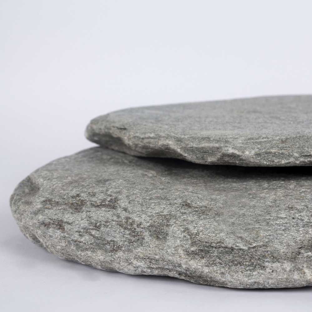 Amenajarea gradinii constituie un cult in Tara Soarelui Rasare, japonezii sunt recunoscuti prin echilibrul interior si prin siguranta miscarilor. “Pasii” japonezi antichizati din ardezie, sunt produsi din piatra naturala poligonala Kavala. Pietrele, de forme poligonale/diferite si cu aspect de roca antica (cu marginile rotunjite), se potrivesc perfect in orice amenajare de gradina, conferindu-i acesteia spatialitate, echilibru si o atmosfera relaxata. Alege din varianta normala (D: 30cm) sau varianta XXL (peste D:40cm), ambele variante au 3-4cm grosime.
