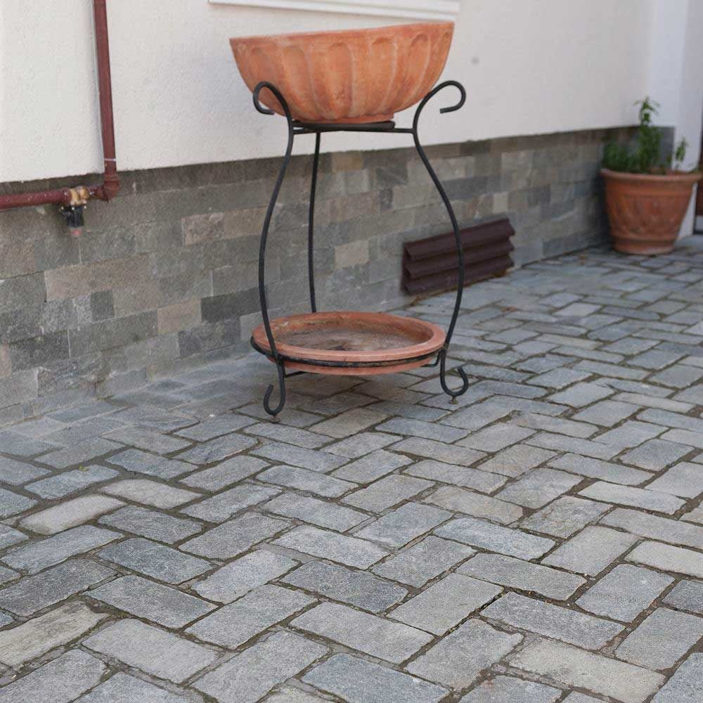 Piatra cubica din ardezie Kavala cu finisaj natur (despicat) este un produs exceptional si este destinat pavajelor exterioare pentru trafic greu si foarte greu. Atunci cand duritatea pietrei intalneste eleganta formelor, rezultatul obtinut este deosebit, iar in folosirea pietrei cubice Kavala natur nu exista loc pentru compromisuri. Livrarea se face la big bag-uri de 1 tona (9-11mp). Pavajul exterior format din dale de ardezie Kavala, indica un statut, o imagine complexa, deoarece traim intr-o lume unde totul este interpretat, astfel trebuie sa ai grija ce mesaj transmiti. Dalele destinate pavajului exterior sunt moderne, si aduc in acelasi timp si un omagiu traditiei. Piatra cubica din ardezie se recomanda pentru alei pietonale, terase exterioare, intrari in garaje, destinate traficului greu si foarte greu. În cazul proiectelor publice, dalele pentru pavaj din piatra cubica Kavala se constituie in alternative perfecte in amenajarea bulevardelor, parcurilor, rondurilor, pietelor etc. Se monteaza pe pat de nisip sau pietris, pentru a se regla mai usor jocul de grosime. Nu uita ca fiecare spatiu acoperit cu dale din piatra cubica are nevoie si de borduri. Trateaza produsul cu solutii de impermeabilizare, iar pentru ca montajul sa se realizeze fara probleme, alege intre patul de nisip sau sapa, cu sau fara rosturi.