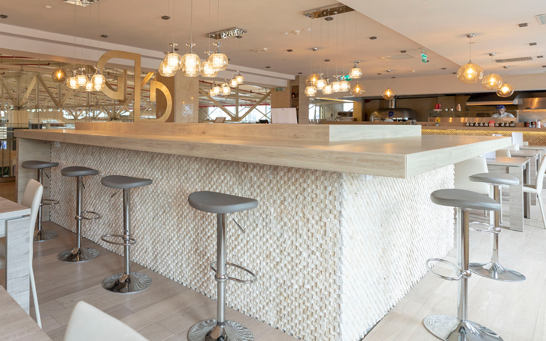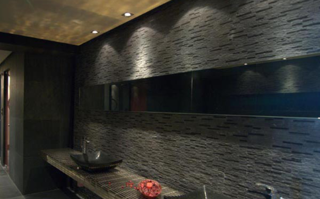 Mai mult decat atat, suprafata neprelucrata a pietrei este asociata cu finetea celorlalte materiale din jur, confera eleganta, prospetime si o nota de inedit spatiului. Nu in ultimul rand, culoarea pietrei naturale scapitate are o vibratie de neegalat in apropierea tonurilor de gri, de culorile albe si de lemnul natur.