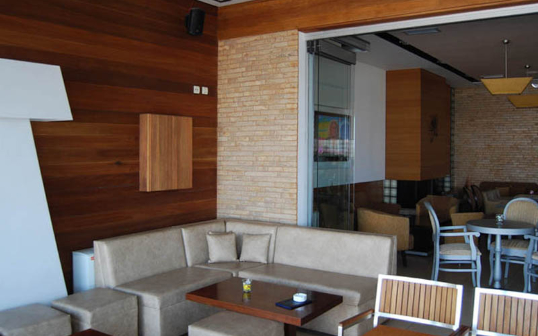 Pe cat de lucioase sunt materialele din living (lemn, inox, sticla etc.), pe atat de aspra si elegant-distincta vine placarea cu piatra scapitata. Pe cat de aspra si neprelucrata este piatra, pe atat de rafinata se impune aceasta in spatiul respectiv.