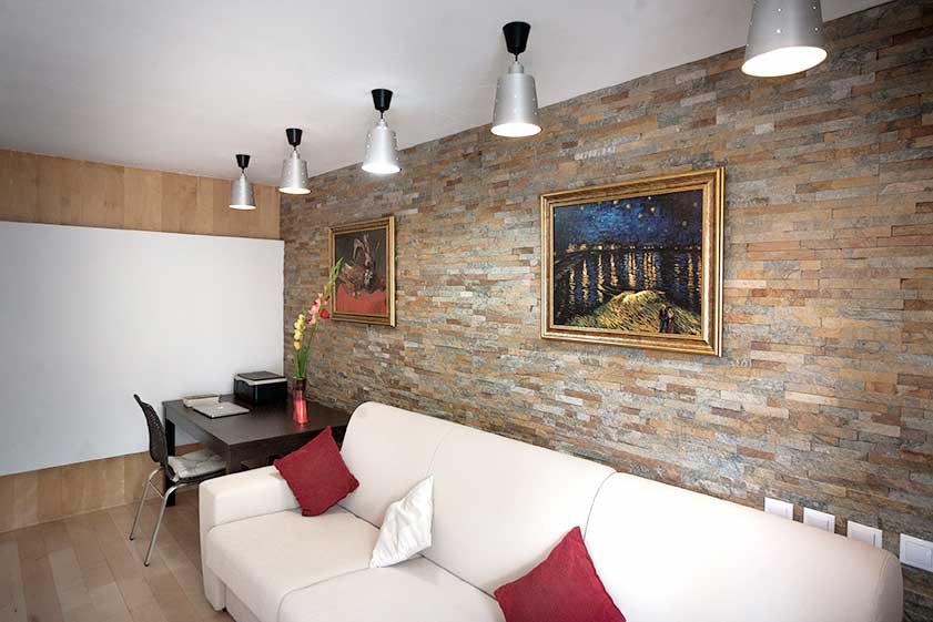 Imagineaza-ti un perete din dormitor format din pietre suprapuse. Piatra naturala este generoasa, asa ca poti gasi culoarea potrivita camerei tale – maro, bej, verde si nu numai. Modelele de piatra decorativa sunt prelucrate astfel incat sa aiba aspectul unor placi suprapuse si inegale. Un astfel de design aduce o atmosfera rustica, ce invita la relaxare. Acesti pereti se pot adapta si unui stil modern si minimalist sau convervator si complex. Poti avea chiar si un dormitor boem cu un perete din piatra intr-o culoare pastelata.