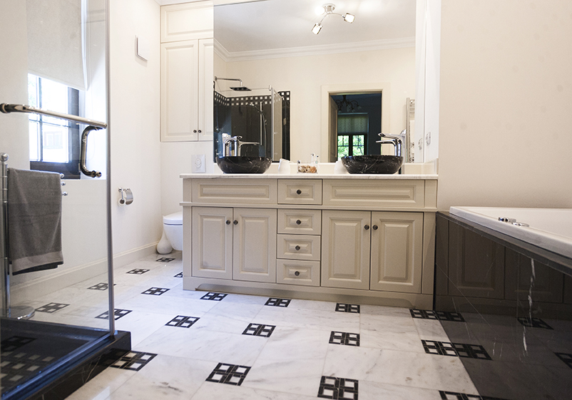 In comert exista mai multe materiale ce imita piatra. Insa, cea naturala poarta complexitatea ce completeaza chiar si un design minimalist. Poti alege o chiuveta neagra, completata de saponiera, pahare pentru pasta si periuta de dinti, dar si mici castroane de stocare din marmura alba. Asorteaza-le cu carlige din marmura neagra de dimensiuni medii sau mari. Vei construi o atmosfera naturala intr-un spatiu surprinzator.