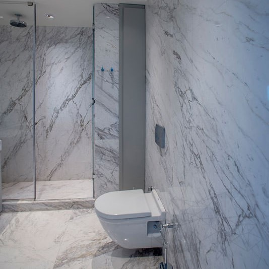In cazul blaturilor de bucatarie sau baie recomandam grosime de 3cm, fara probleme poate sa fie utilizata si 2cm. Vrei o suprafata unica a blatului tau din bucatarie sau baie, alege marmura  Calacatta  polisata. Absorbtia de apa scazuta si  rezistenta la socuri mecanice fac blatul util si practic. Unicitatea si aspectul o recomanda in cazul amenajarilor pretioase, cu care te poti lauda. In sectia noastra de productie executam blaturi personalizate / „tailor made” prin debitarea direct din lastre, aceasta se face dupa masuratori precise si dupa verificarea locului de montaj (peretii trebuie sa se inchida in unghi drept).