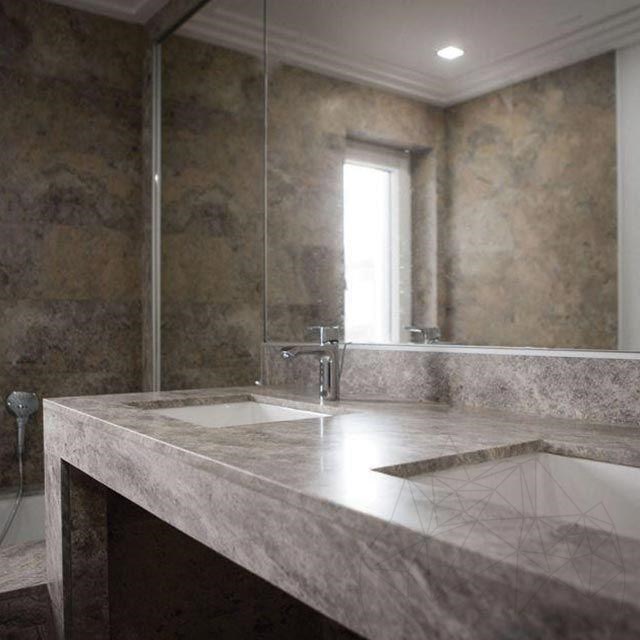 In cazul blaturilor de bucatarie sau baie recomandam grosime de 3cm, fara probleme poate sa fie utilizata si 2cm. Vrei o suprafata unica a blatului tau din bucatarie sau baie, alege travertinul Silver Mat. Absorbtia de apa scazuta si rezistenta la socuri mecanice fac blatul util si practic. Unicitatea si aspectul o recomanda in cazul amenajarilor pretioase, cu care te poti lauda. In sectia noastra de productie executam blaturi personalizate / „tailor made” prin debitarea direct din lastre, aceasta se face dupa masuratori precise si dupa verificarea locului de montaj (peretii trebuie sa se inchida in unghi drept).