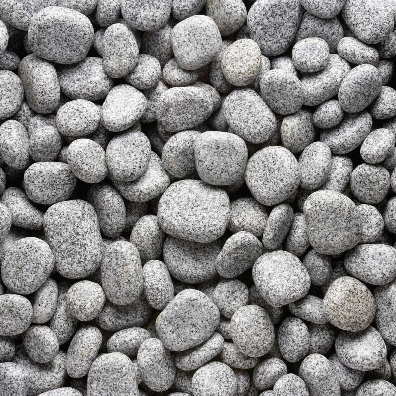 Pigmentarea specifica si atractiva a granitului este prezenta si ea in noua gama de produse PIATRAONLINE. Sub denumirea de ”pebble Granit Rock Star Grey Discus” descoperim pietre cu mici pete alb-negru, combinate foarte omogen, care au marginile mult mai rotunjite si mai netede decat cele prezentate mai sus. Rocaria Moonstone are orificii adanci si mici, unele ajungand totusi pana la 2 cm diametru, care par ca traverseaza roca ca un soi de micro retea tubulara, fapt ce o face sa arate foarte organic. Tot cu aspect organic, dar parca si mai straniu, se prezinta rocaria Spaghetti.