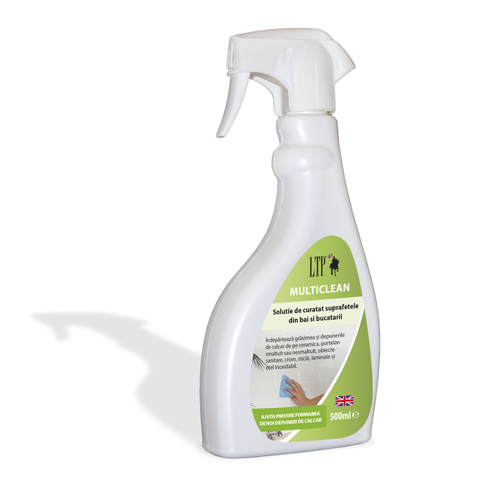 - Multiclean este un detergent pentru intretinere care indeparteaza reziduurile de calcar, grasimea si murdaria de pe suprafetele din ceramica, piatra naturala si artificiala, obiecte sanitare, baterii si suprafete cromate, otel inoxidabil si sticla.