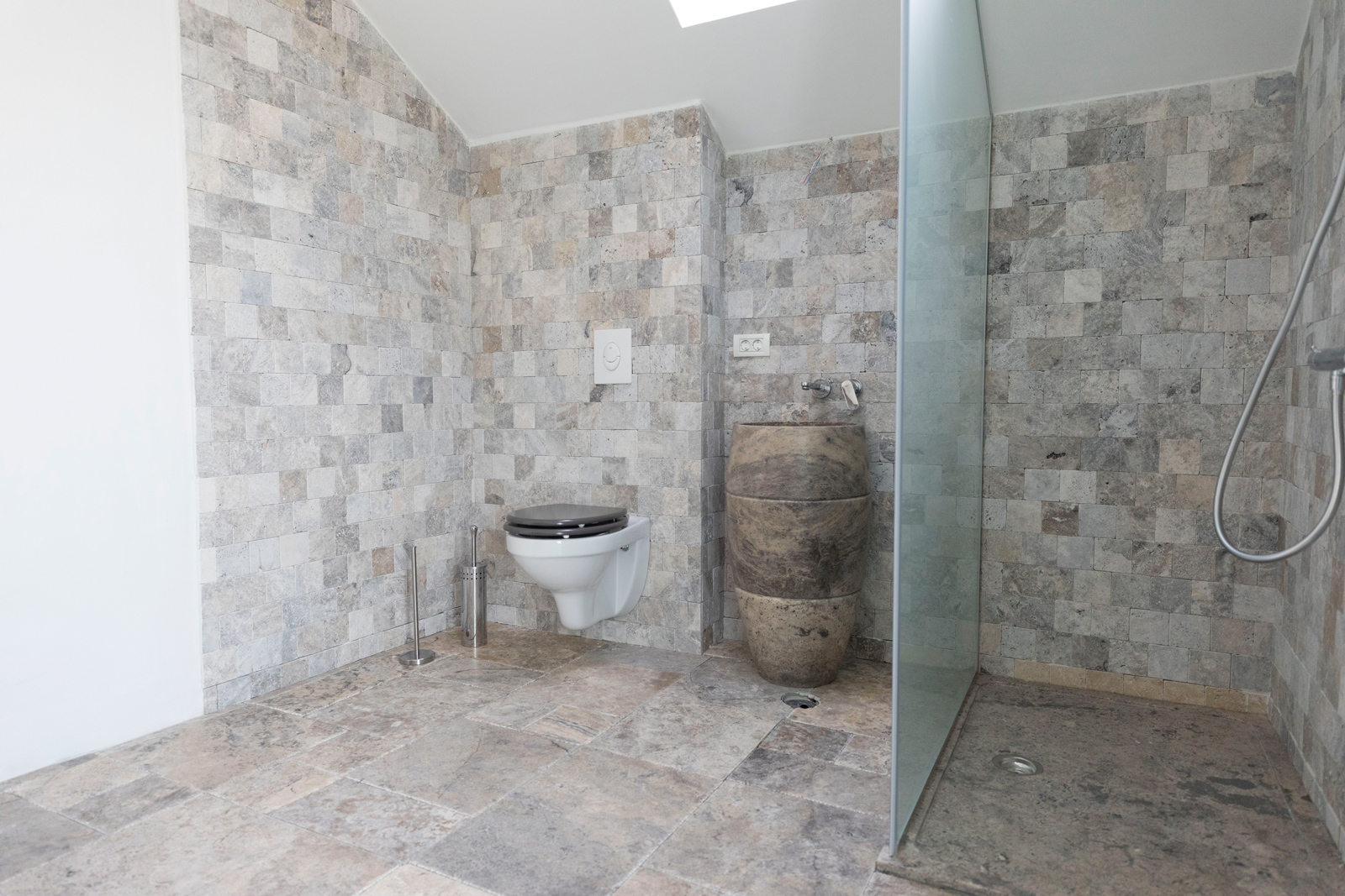 Placile de travertin antichizat sunt adecvate atat placarilor verticale, cat si orizontale. Se monteaza usor si rezista bine in spatii umede dupa impermeabilizarea suprafetei cu o solutie speciala. Aspectul si textura travertinului confera eleganta spatiului, iar variatiile naturale de nuanta adauga autenticitate.