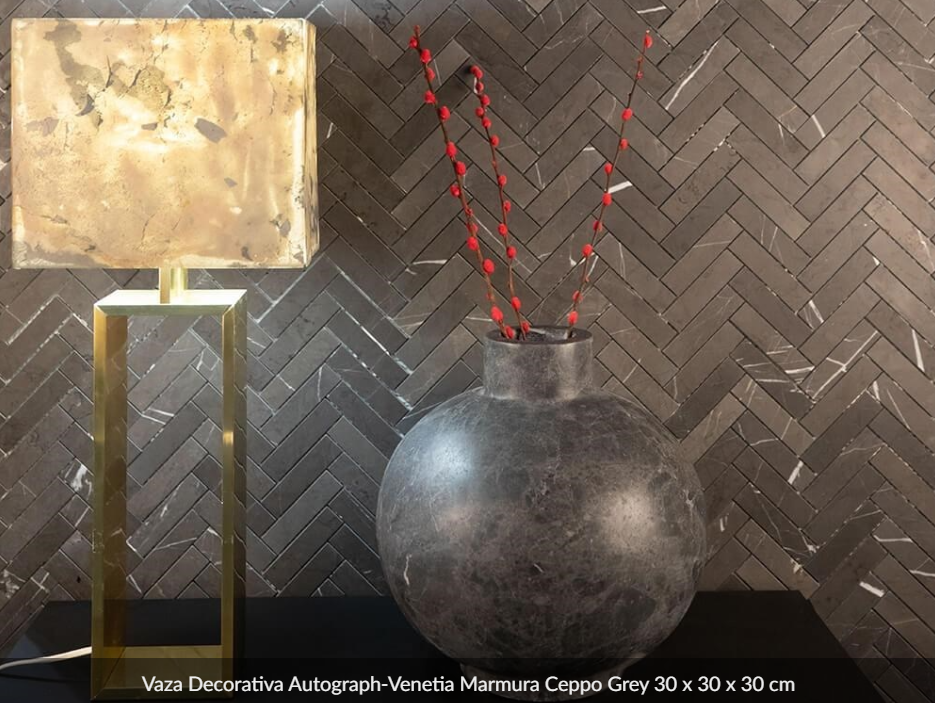 • vaza decorativa din marmura gri sau neagra, travertin clasic, latte, rosu sau galben;