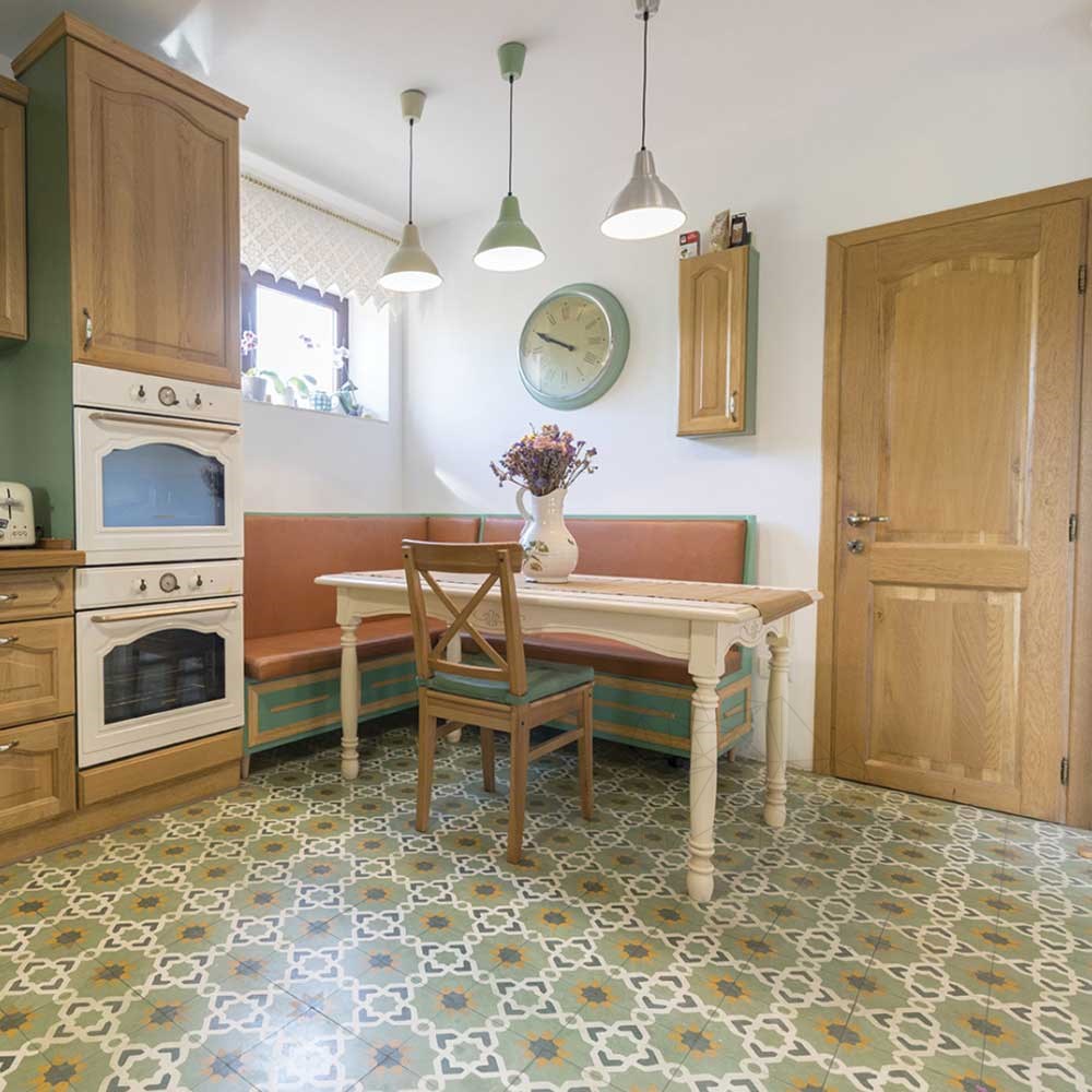 2. Частные и ресторанные кухни – натуральный камень используется для горизонтальной и вертикальной облицовки, а также при изготовлении столешниц и столешниц. Его также используют как варочный камень (на нем готовят пищу). Требования к облицовке натуральным камнем аналогичны требованиям к облицовке ванной комнаты, с той лишь оговоркой, что высок риск появления жирных пятен, а следовательно, и риск поскользнуться. Подойдут полы из матового гранита и сланца. На столешницах следует избегать опасности появления царапин и едких пятен. Мы рекомендуем столешницы из полированного гранита толщиной 2 см. Выбор камня для столешницы колеблется между эстетическими и функциональными аспектами. Обратите внимание, что варочный камень не обработан.