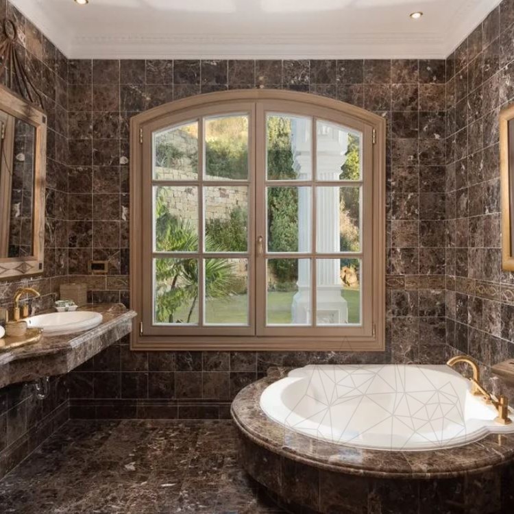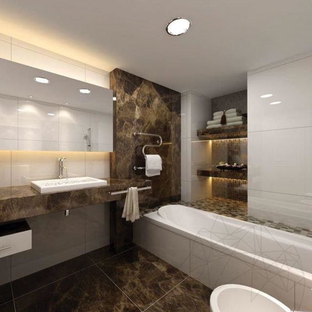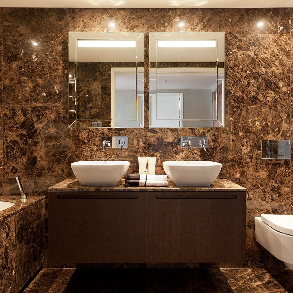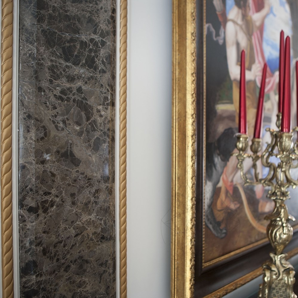 НОВЫЙ! Мрамор Maron Emperador PREMIUM отличается богатым рисунком прожилок светлых тонов белого, бежевого и золотого, дополненным блеском, полученным благодаря полированной отделке, что придает элегантность и изысканность любому интерьеру. Мрамор Maron Emperador с полированной отделкой часто находит применение при отделке каминов, мебели, столешниц ванн и раковин, кухонных столешниц и многого другого. Кроме того, его используют для облицовки полов, стен и, реже, в скульптуре. Он прекрасно вписывается в классический, темный, элегантный, гламурный стили или стиль рококо.