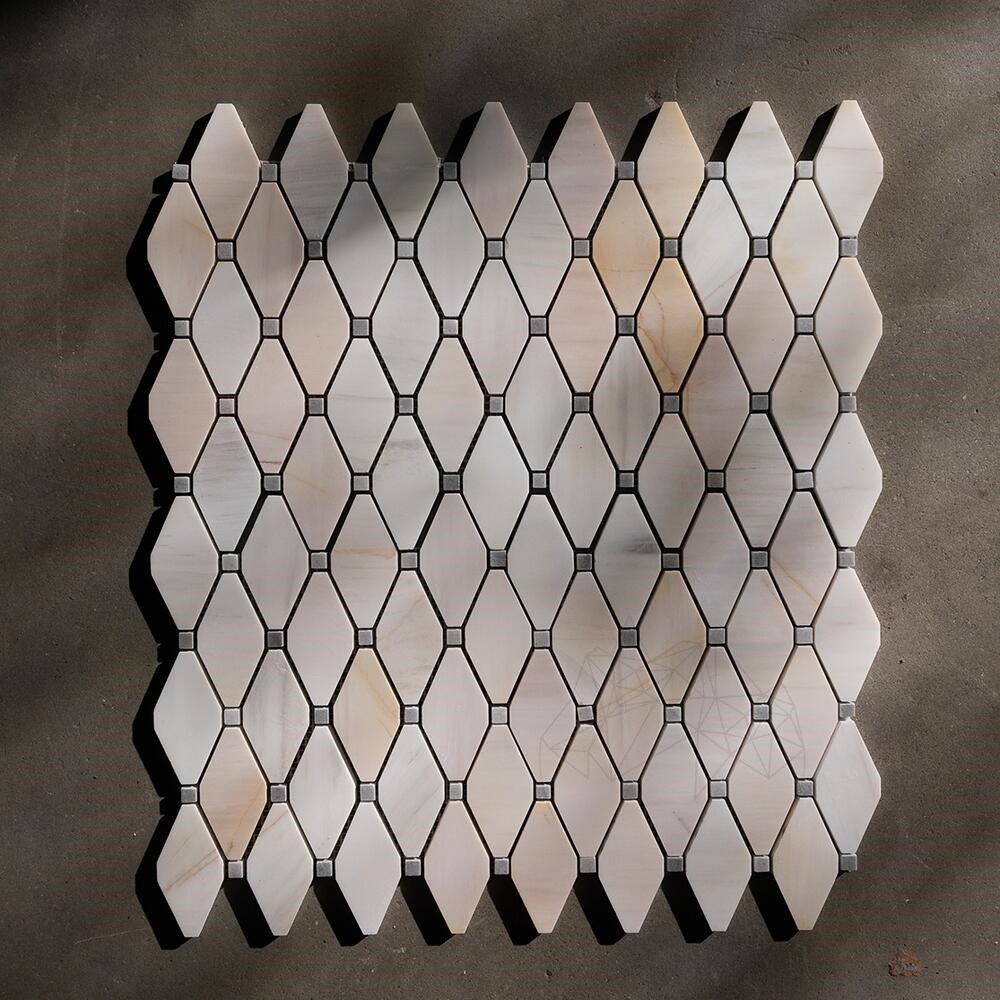 Мозаика из полированного мрамора Melia White & Grey размером 24,5 x 26,5 см представляет собой впечатляющее сочетание элегантности и изысканности. Сочетание двух ромбовидных узоров мрамора делает это искусно выполненное изделие выдающимся по своему внешнему виду и высочайшему качеству.