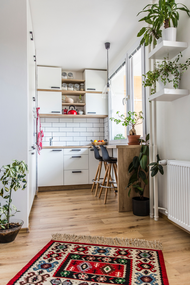 Вы можете выбрать газовую плиту с электрической духовкой, которая не требует подключения к газовой трубе. Не забудьте о мощной и эффективной вытяжке, чтобы вам не пришлось просыпаться утром и не обнаружить, что весь балкон запотел, а запах еды распространяется по всему дому.