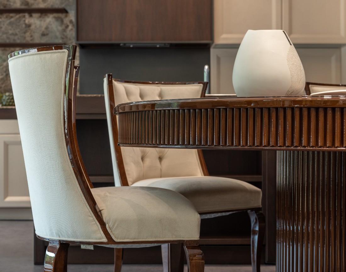 При покупке обеденного стола убедитесь, что он пропорционален имеющемуся пространству. Если пространства мало, выбирайте расширяемую модель. В дизайне гостиной стол может быть узким, чтобы обеспечить достаточное количество мест для сидения, не занимая при этом много места, и создать интимную атмосферу.