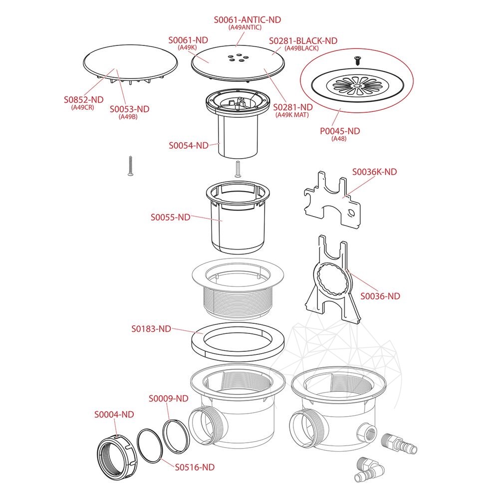 Sifonul cadita dus este destinat evacuarii apei din caditele fara preaplin, care au practicata o gaura de scurgere cu diametrul de 90 mm, este executat din polipropilena rezistenta la produse chimice uzuale si permite evacuarea a 43l apa/min. Rezista la o temperatura de 95° C. In catalog apar disponibile variante cu capac plastic cu finisaj cromat, alb, negru mat , capac metalic lucios si mat, sita din otel inox, iar pentru amatorii stilului clasic exista si un finisaj bronz antic. Completul de livrare contine corpul sifonului si ventilul, capacul, kit-ul de asamblare. Montajul este cel uzual.  Garantia este de 2 ani.