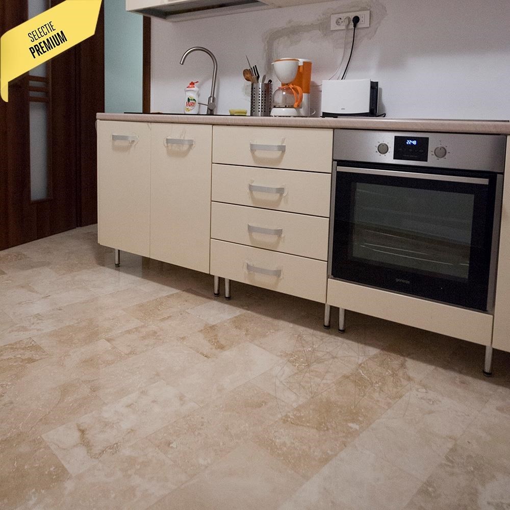 Alege un material cu mult superior gresiei sau faiantei, placile de travertin Classic, acest material are marea calitate de a infrumuseta spatiul cu textura lui naturala si nuantele calde. Mai mult, travertinul este potrivit pentru orice concept de amenajare interioara: de la clasic, la contemporan si poate fi pus foarte bine in evidenta prin folosirea luminii sau prin asocierea cu diferite elemente decorative din lemn. Se poate utiliza in bai, bucatarii, livinguri, holuri etc, la placari de pardoseli, pereti, semineuri, etc. In decoratiunile exterioare utilizarea travertinului Classic Cross Cut, mat se intalneste la placarile de fatade, garduri, socluri, chenare de ferestre si usi etc. In cazul spatiilor umede si a zonelor publice, se poate obtine o rezistenta mai indelungata prin folosirea unui impermeabilizant, iar recomandarea PIATRAONLINE este LTP Mattstone sau varianta ecologica LTP Mattstone h1O. Placile din travertin Classic Cross Cut Mat cu dimensiunea 40.6 x 20.3cm iti permit sa oferi profunzime unui spatiu mai dificil de pus in valoare. Culoarea clasica este mereu o optiune eleganta ce confera luminozitate spatiului vizat.