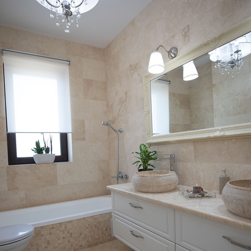 Travertin Classic Cross Cut este recomandat in proiectele de amenajare interioara si exterioara,  placarile orizontale si verticale. Datorita aspectului sau linistit, travertin classic cross cut imprima un sentiment de relaxare proiectului de amenajare si este ideal pentru placare gard, placare soclu, placare fatada. Travertinul este o roca sedimentara cu calcar in compozitie. O piatra naturala poroasa, travertinul apare prin indelungate procese de erodare, depunere, compactare si cimentare a micilor particule plus fosile de plante si animale. Travertinul este sensibil la actiunea acizilor si are rezistenta medie la solicitarile mecanice si abraziune. Travertinul Classic Cross Cut se livreaza cu dimensiunile 60 x 30 x 2 cm, finisaj mat.