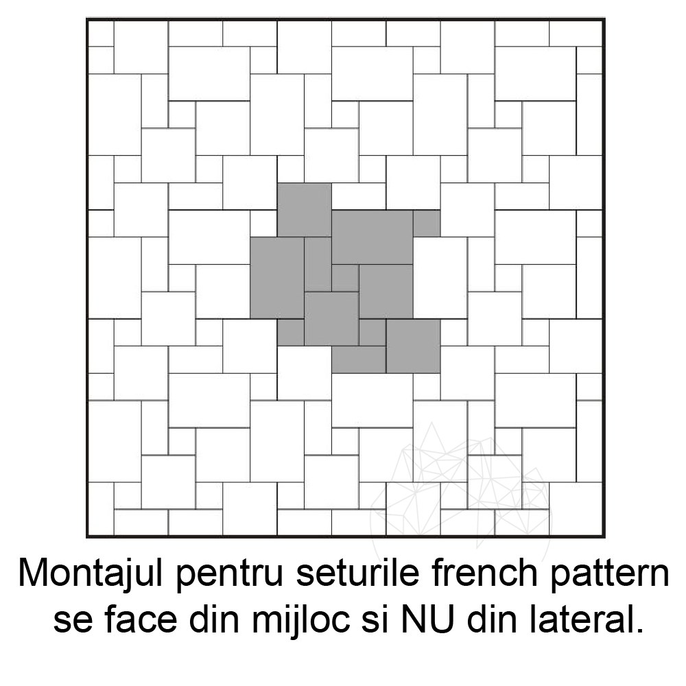 Tehnologia French Pattern: Planificați dispunerea plăcilor înainte de montaj pentru a obține un aspect echilibrat și estetic.