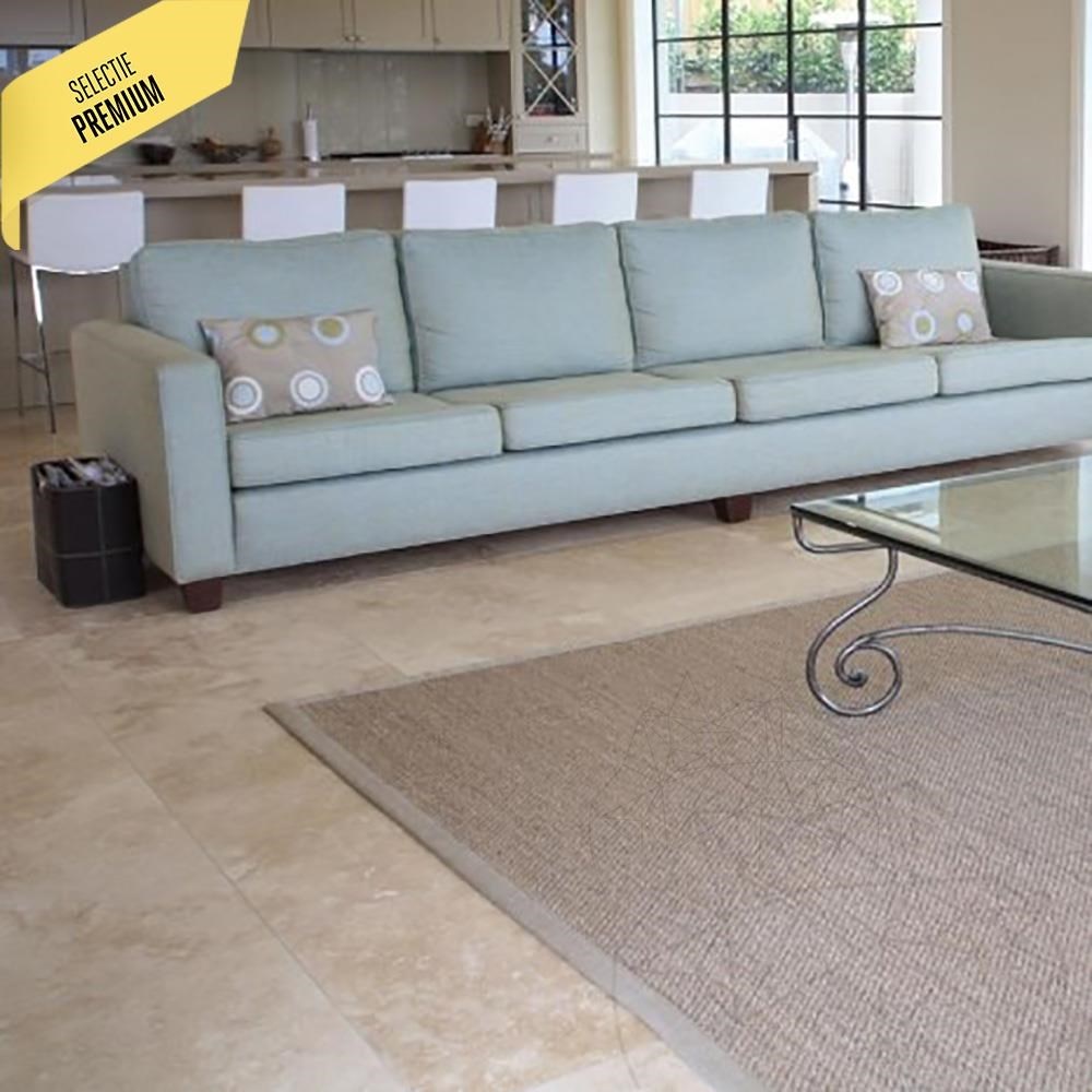 Dimensiunea mare a acestor placi creeaza impresia de spatiu marit, indiferent de cat de mare sau cat de mica este o incapere. In ceea ce priveste nuantele travertinului Classic PREMIUM, acestea au puterea de a oferi oricarei incaperi impresia de caldura, de spatiu relaxant. Aici se adauga si faptul ca finisajul polisat al pietrei ofera suprafetei un aspect stralucitor, lucios, evidentiat foarte bine datorita luminii naturale sau artificiale. Dimensiunea placilor de 122 x 61 cm ofera impresia de alungire a suprafetei alese pentru acest tip de placaj. Indiferent de spatiul in care vrei sa folosesti aceste placi de travertin Classic polisat (baie, bucatarie, hol, living) avem convingerea ca proiectul personal va fi un succes.