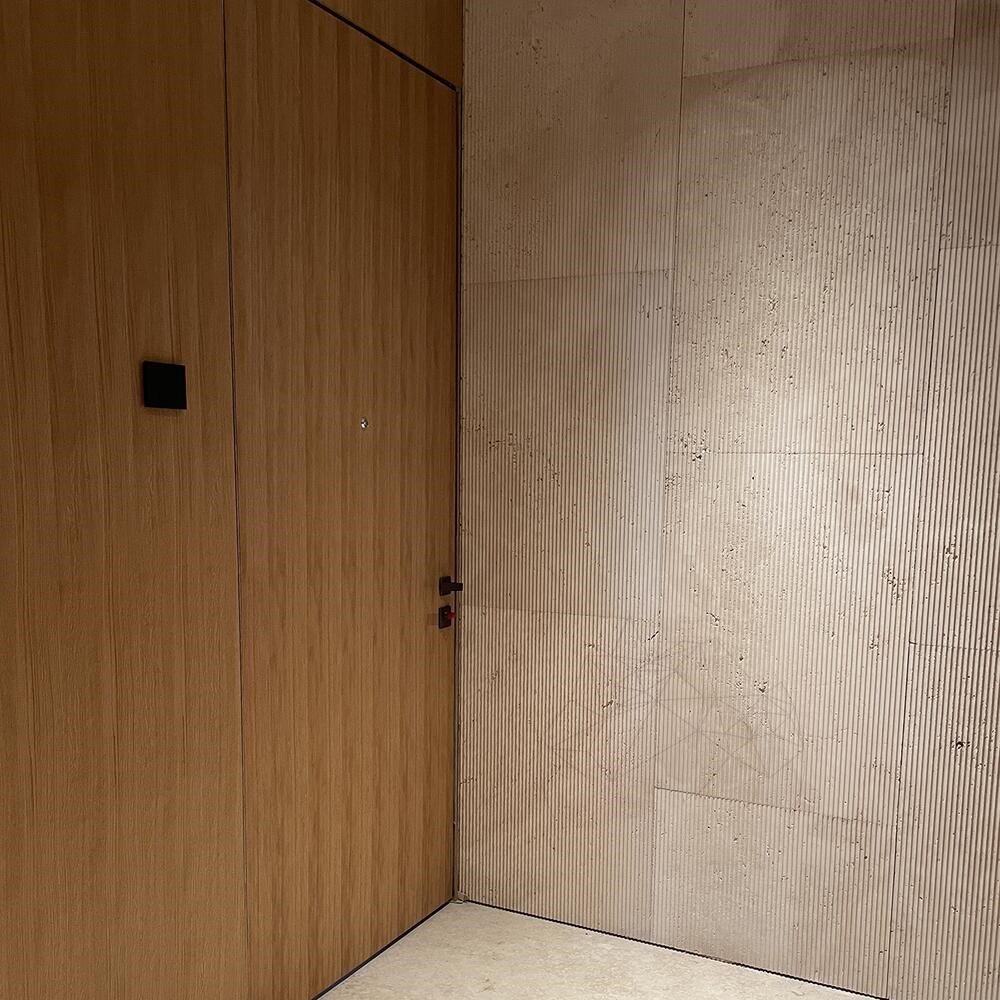Panourile Riflate din travertin sunt alegerea ideală pentru placările verticale din proiectele de amenajări interioare și exterioare, datorită aspectului său natural, calm și rafinat. Textura echilibrată, cu venaturi discrete și nuanțe calde, oferă spațiului o senzație de relaxare vizuală, indiferent dacă este vorba despre o fațadă de locuință, un gard decorativ sau un perete de accent în interior. Produsul beneficiază de un finisaj precis realizat cu ajutorul tehnologiei CNC, ceea ce garantează o calitate superioară a suprafeței și o montare uniformă, chiar și în proiecte ample. Plăcile standard sunt disponibile în format generos de 120 x 60 cm, cu o grosime de 2 cm, dimensiune care contribuie la crearea unui efect de continuitate vizuală și spațiu mărit, la cerere, plăcile pot fi debitate la dimensiuni personalizate, în funcție de specificul proiectului și cerințele arhitectului sau beneficiarului.