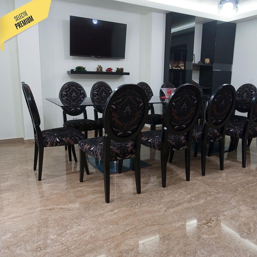 Travertinul Latte cu finisaj polisat prezinta o cromatica uniforma ce confera eleganta oricarui spatiu. Potrivit pentru spatii precum bai, bucatarii, livinguri, holuri, sali de asteptare, terase acoperite, travertinul Latte incanta chiar si cele mai pretentioase gusturi si are puterea de a evidentia unicitatea spatiului in care este montat. Datorita proprietatilor sale, travertinul Latte este un bun conducator de caldura, astfel ca poate fi folosit pentru constructiile rezidentiale sau publice.  Nuanta pamantie a acestui travertin si stralucirea placilor, creeaza in incaperi un aspect somptuos, iar daca alegi sa-l folosesti in bucatarii si in bai, te vei bucura de un aspect curat si luminos, mult mai mult timp.