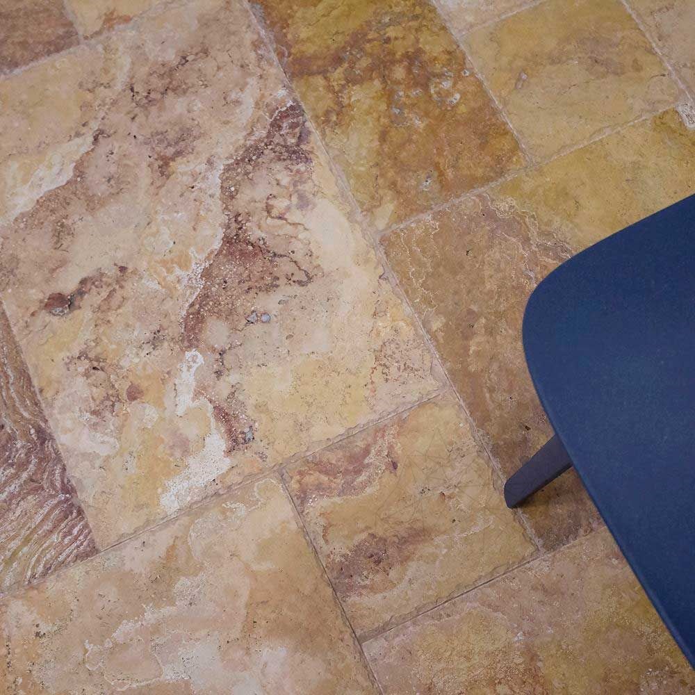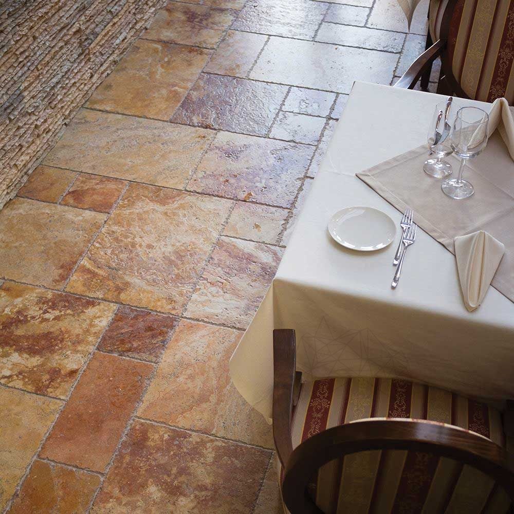 Descopera un produs unic, spectaculos si exclusiv! Fie ca preferi stilul clasic sau cauti un produs unic prin culoare, travertinul Peach French Pattern, periat si daltuit, poate fi solutia ideala. Placarile facute cu acest tip de travertin te fac sa simti natura foarte aproape de tine, datorita aspectului sau rugos (realizat prin periere) si marginilor daltuite.  Sufragerii, bai, bucatarii, birouri sau cafenele – toate reprezinta spatii in care travertinul acesta poate fi utilizat la placarea peretilor, a podelelor, ca glafuri sau chenare decorative de usi sau ferestre. La exterior, se poate utiliza la placarea fatadelor de cladiri, de garduri, socluri sau pentru diferite cadre decorative etc. Travertinul Peach Cross Cut French Pattern va induce mereu spatiului amenajat, privat sau public, un aer degajat, rafinat si atemporal. Placile pe care le-ati achizitionat sunt 100% piatra naturala. Se pot monta la interior sau la exterior, sunt rezistente la solicitari mecanice, cicluri climatice si la actiunea factorilor de mediu.