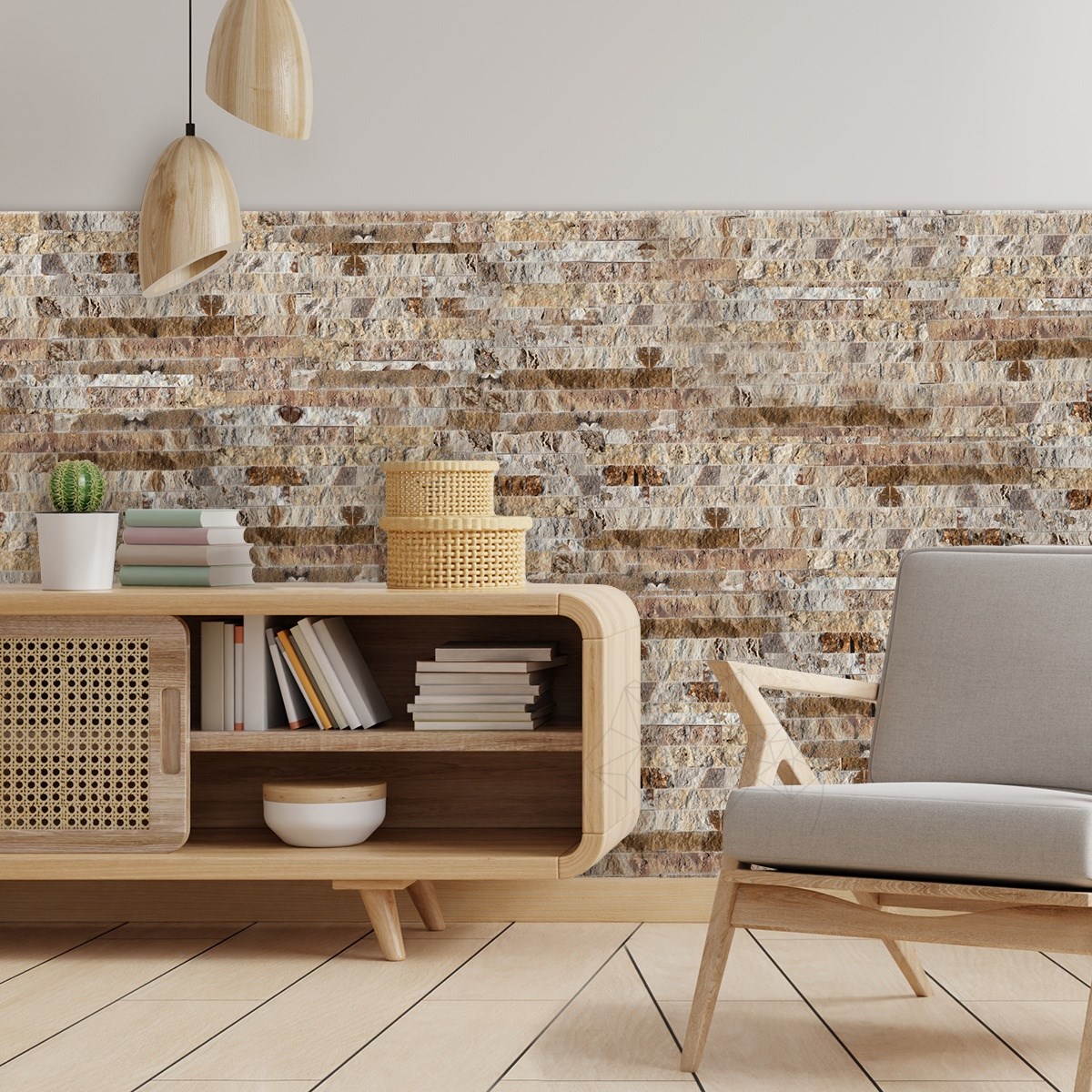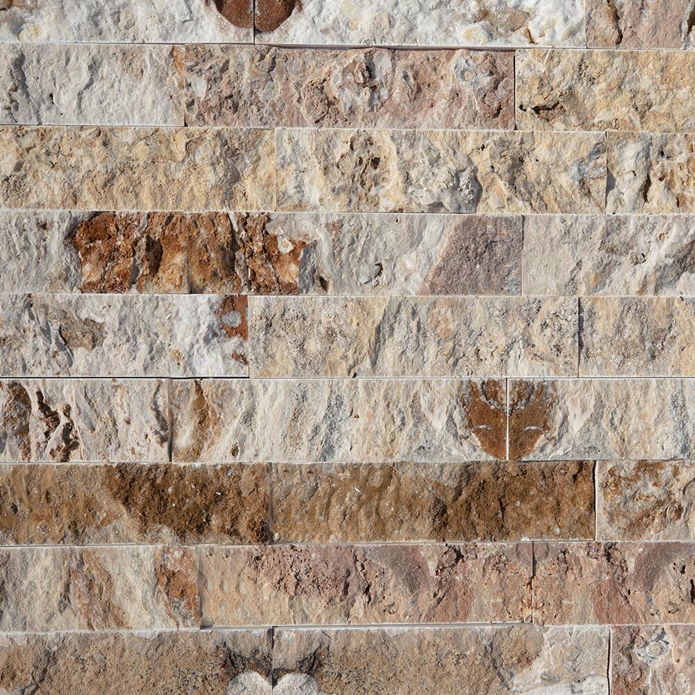 Travertin Riad Multicolor se foloseste ca material de constructie, pentru executia de placari ornamentale si amenajari decorative la interior si la exterior. Travertinul este o roca sedimentara care s-a format in urma unor indelungi procese de erodare, depunere, compactare si cimentare de mici particule si fosile de plante si animale care au trait odinioara. Modul de formare si compozitia determina proprietatile, travertinul este o piatra calcaroasa, cu duritate in gama 3-4. Travertinul Riad Multicolor este colorat cu nuante mediteraneene, complementar, care relaxeaza si indeamna la visare. Finisajul este scapitat. Dimensiunile 20x5x2 cm favorizeaza montajul vertical, la interior si la exterior.