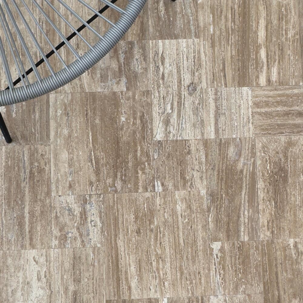 Travertinul Walnut este o piatră naturală de calcar, formată în mod natural, cu tonuri calde de maro. Datorită tăieturii vein cut, liniile naturale și venele pietrei sunt scoase în evidență, oferind un efect elegant și contemporan. Această tehnică de tăiere urmează structura naturală a travertinului, creând un model liniar ce aduce profunzime și dinamism fiecărui proiect.