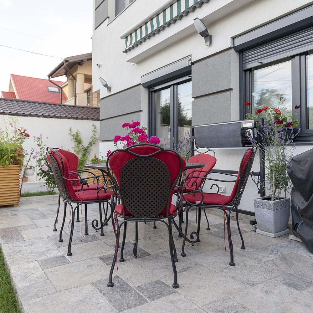 Pavajul exterior din travertin Silver French Pattern la 3cm imbina eleganta cu rezistenta pietrei naturale. Finisajul sau consta intr-o periere a suprafetei si o daltuire a marginiilor, ceea ce il face antiderapant. Datorita grosimii de 3 cm, travertinul Silver French Pattern se poate folosi in gradini, pavaje publice, holuri de trecere, acoperite si neacoperite, borduri piscina, terase etc. Culorile sale calde (mix de crem si gri) il recomanda ca usor asortabil la alte elemente de decor. Potentialul sau eclectic este impresionant, putand deveni fundalul unor stiluri ambientale de la chic sau rustic, pana la minimalist sau industrial. Este usor de intretinut, fiind adesea intalnit atat in cadrul proprietatilor rezidentiale, cat si in cele publice. Eleganta casei tale nu trebuie sa se opreasca in prag, ci trebuie sa se reflecte si in modul in care iti amenajezi spatiul exterior, iar travertinul Silver French Pattern poate oferi o solutie ingenioasa si eleganta in acelasi timp.