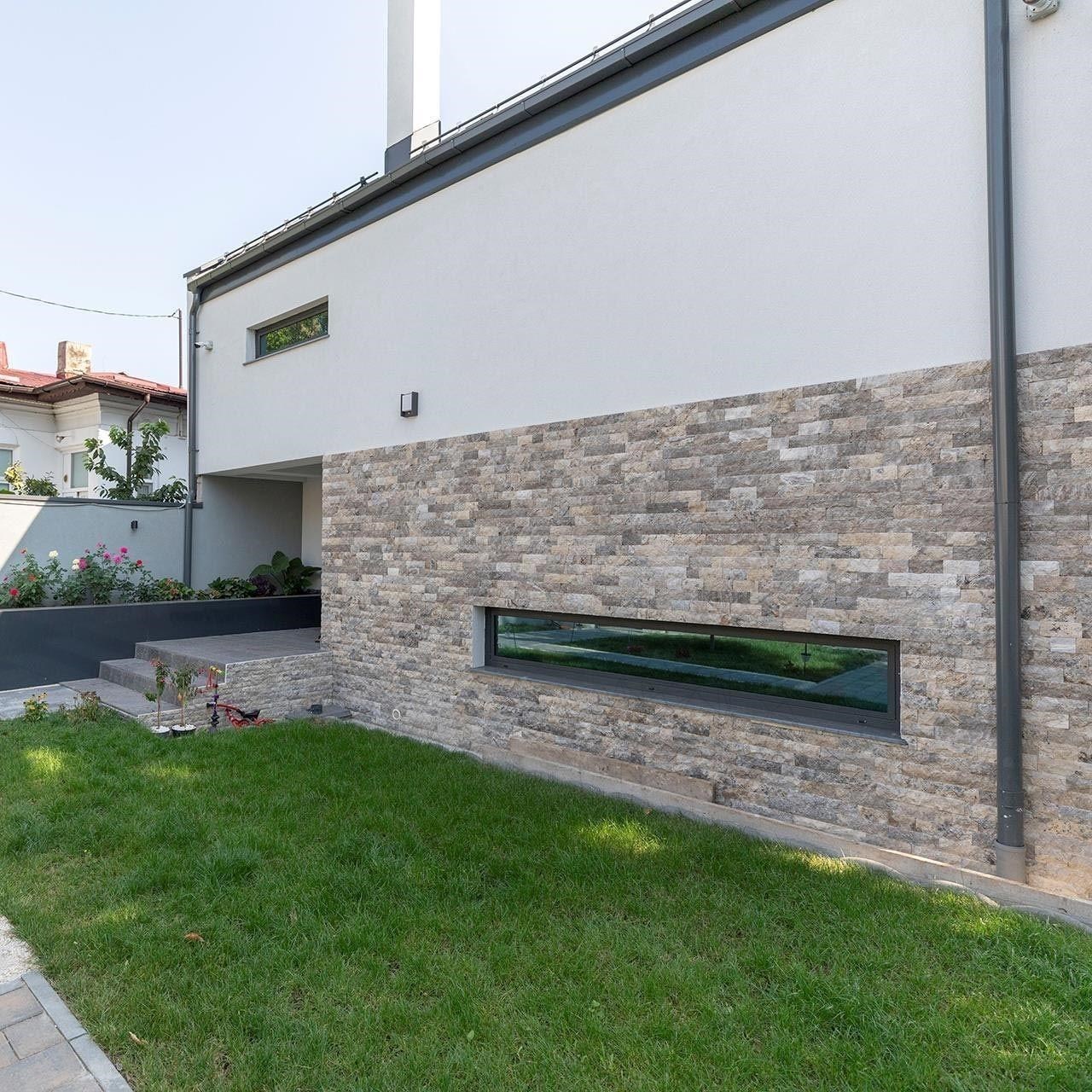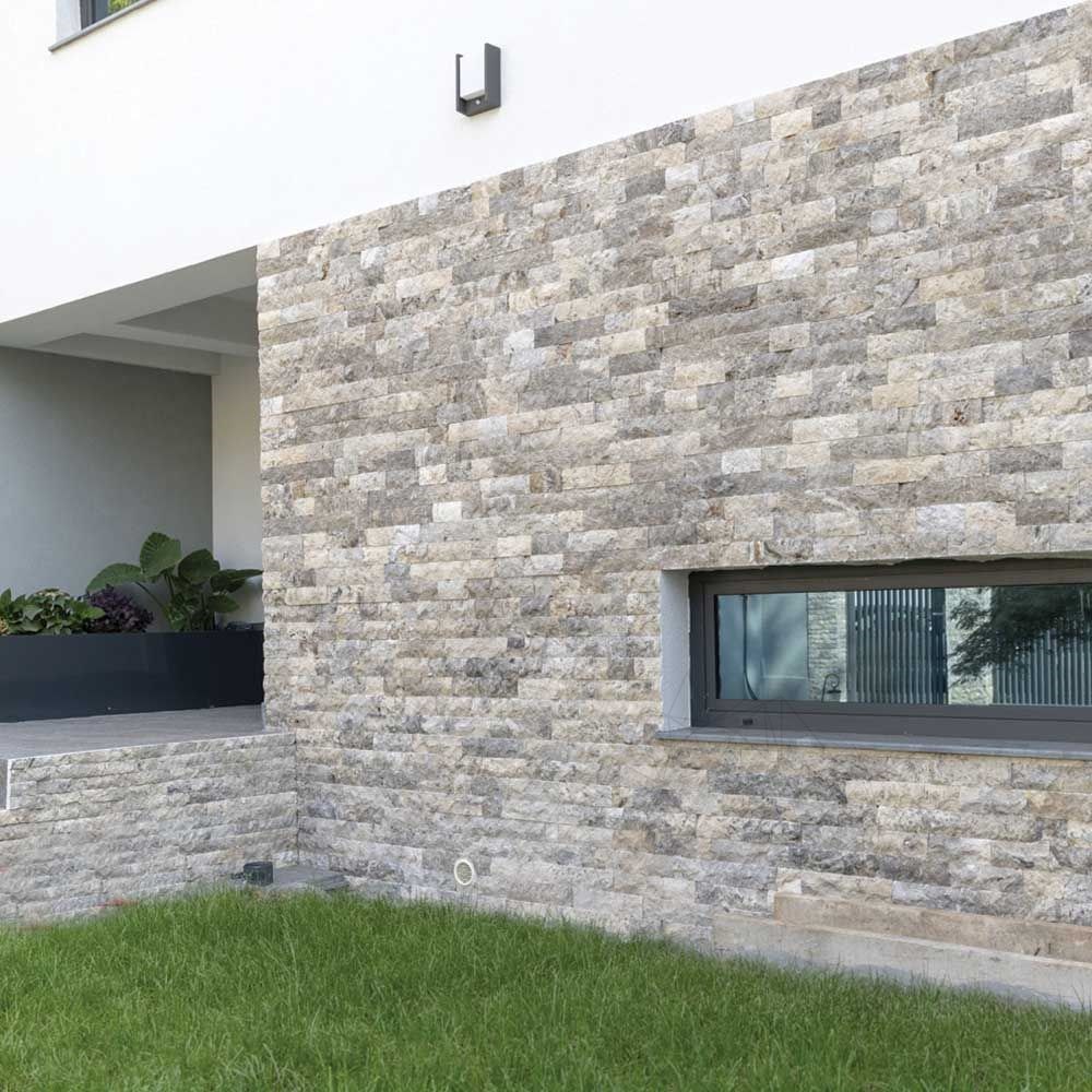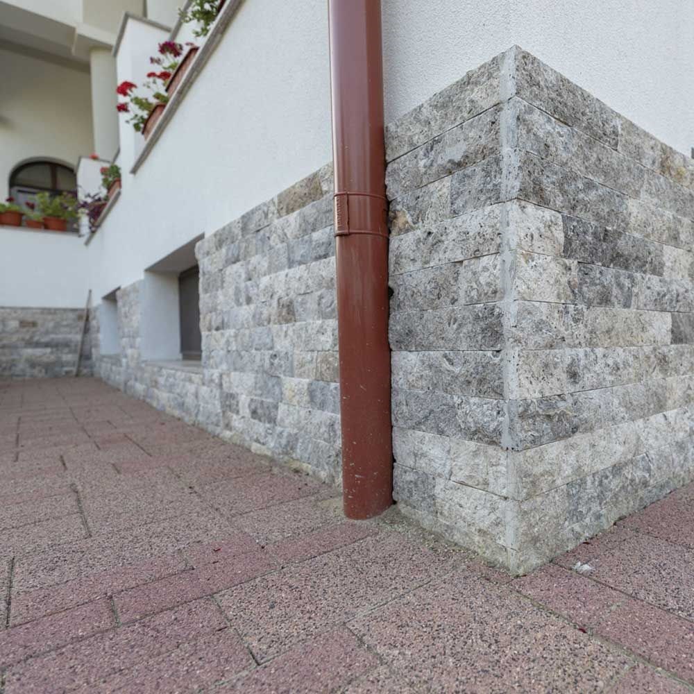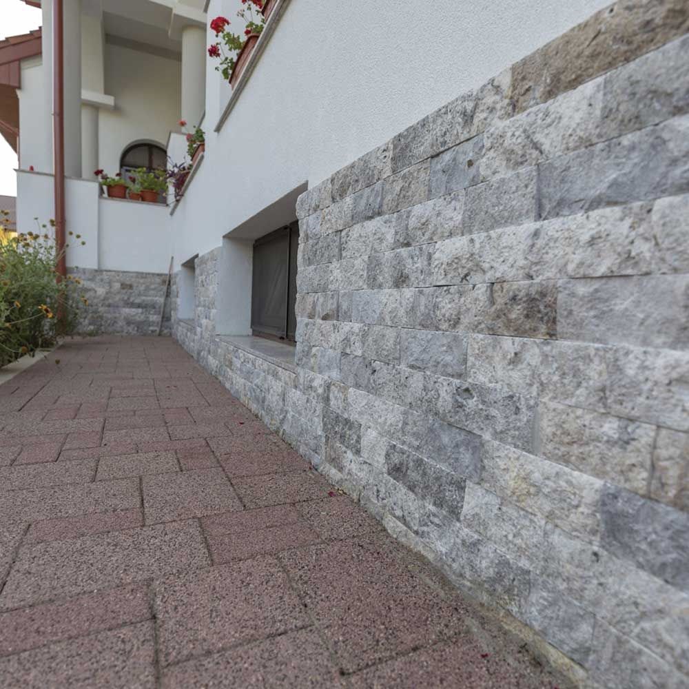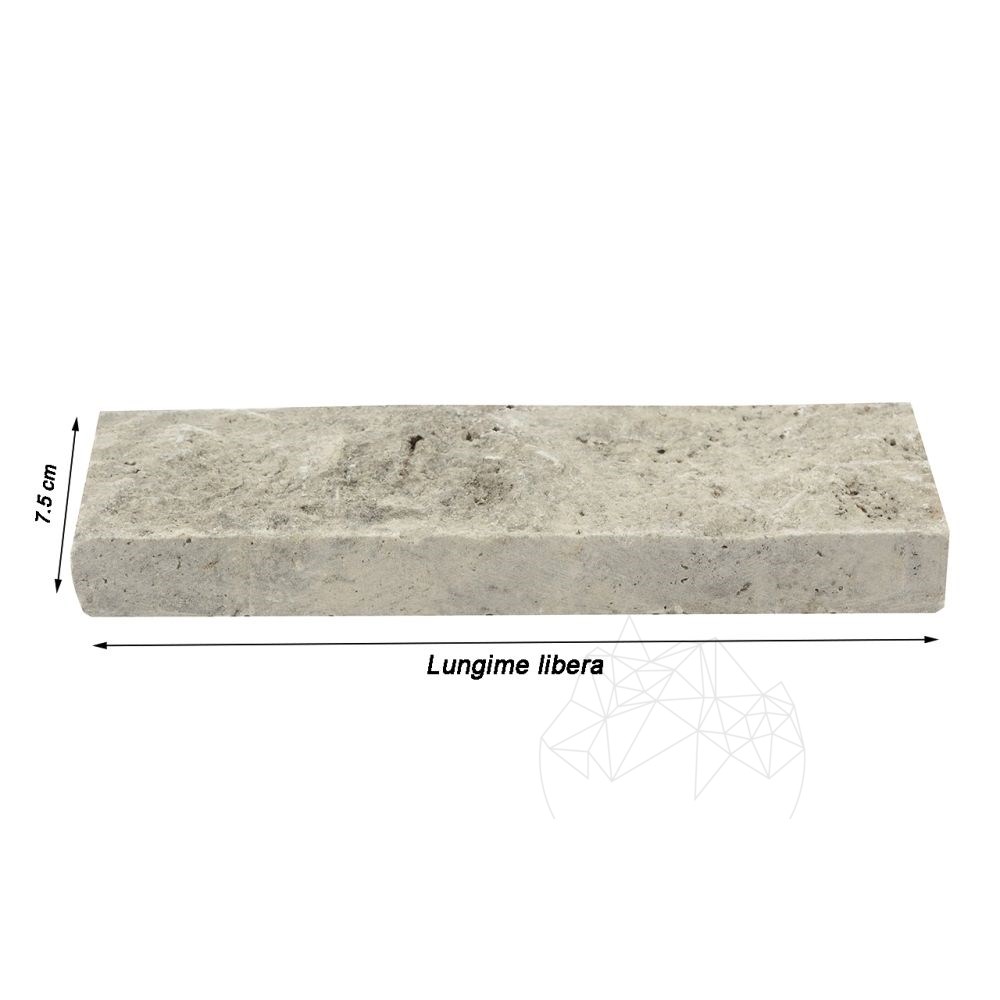 Travertin Silver Scapitat la 7.5 cm, placarea cu piatra naturala schimba 100% ambientul, in functie de culoarea dominanta a pietrei. De exemplu, travertinul Silver scapitat este un produs caracterizat prin constanta sa in culoare chiar si pe suprafete intinse. Latimiile disponibile pentru acest material sunt de 7.5 cm, cu grosime de 2.2 cm, iar lungimea este libera (L.L.), fiecare bucata avand o alta lungime. Aceste diferente de lungime ii confera o frumusete aparte imaginii generale, dupa montaj. Travertinul Silver Scapitat confera suprafetei placate rezistenta superioara, culoare vibranta ce suporta bine uzura indelungata, toate acestea fac din acest produs o investitie excelenta.  Travertinul Silver, dupa cum mentionam si anterior combina detalii naturale bogate, ce pot sa epateze intr-un proiect modern prin aspectul sofisticat rezultat din imbinarea tonurilor gri si crem.  Acest tip de piatra naturala decorativa Travertin Silver se preteaza atat placarii exterioare, cat si interioare in spatii precum holuri, bai si bucatarii, desi multi o prefera in realizarea bailor, a panourilor protectoare din spatele blaturilor, data fiind frumusetea clasica universala si rezistenta deosebita. Ideal pentru amenajari interioare si exterioare;