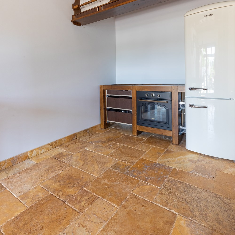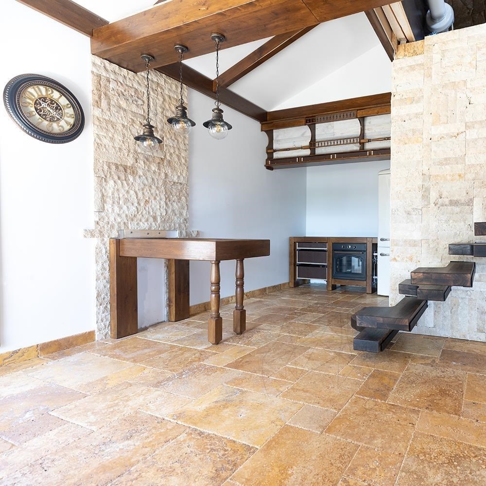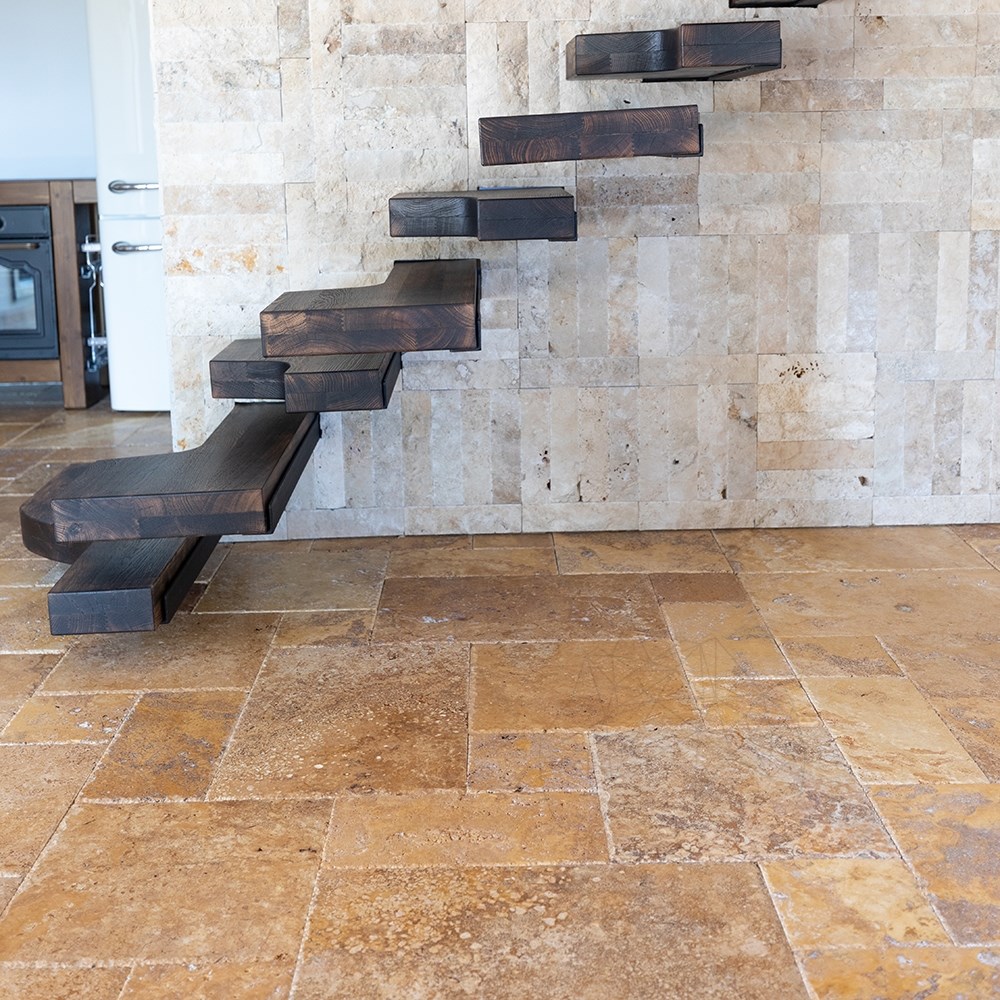 Un produs cu totul deosebit. Seturile de travertin Yellow pe nuanta aurie cu model frantuzesc vor da locuintei tale, valoarea pe care o merita. Seturile de travertin sunt recomandate pentru placari orizontale si verticale la interior, in special finisajul periat promite o buna aderenta chiar si in conditii de apa sau umezeala. In cazul placarilor exterioare, recomandam doar placarea verticala - ex: pe fatada, soclu, terase acoperite, etc. Pentru o mai buna manipulare, produsul se ambaleaza la pachete de 0.742mp.