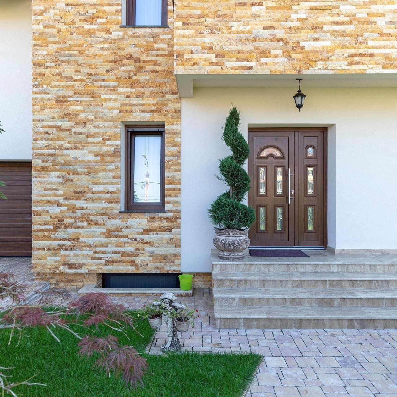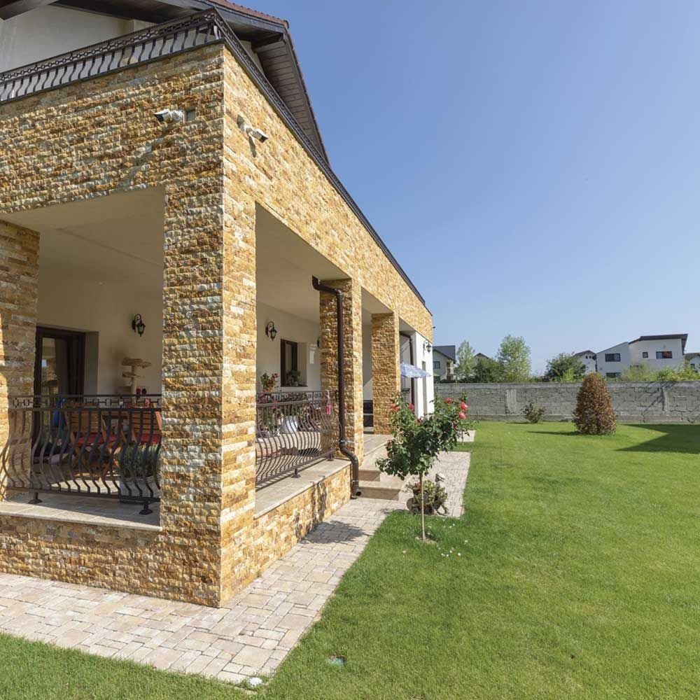 Travertinul Yellow cu finisaj scapitat este dens si are o suprafata care nu cedeaza in fata ciclurilor recurente de udare/uscare (anotimp ploios ninsoare) sau inghet/dezghet, fiind chiar rezistent. Dimensiunea acestui produs este de 7.62 cm latime, cu lungimi variabile si grosime de 2.2 cm.