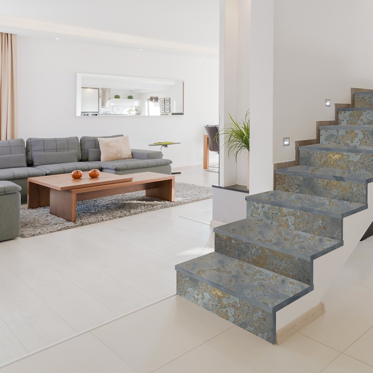 Ardezia Multicolora Noisette Natur se remarca intre celelalte prin coloritul bogat al placilor si prin faptul ca nu vei gasi doua placi la fel. Astfel, treptele din locuinta ta devin un tablou al naturii. De la nuante de verde, gri si negru, pana la cele mai deschise nuante de crem, ardezia Multicolora Noisette Natur se incadreaza perfect in decorurile casei tale. Treptele din aceasta piatra naturala pot deveni acele elemente care iti vor defini locuinta, iar ardezia din care acestea sunt realizate, aduce un farmec aparte. Pe langa aceste caracteristici estetice, ardezia Multicolora Noisette Natur este un material rezistent, iar placile cu grosimea de 2 cm sunt ideale pentru scarile de exterior. In plus, aceste trepte vor rezista.