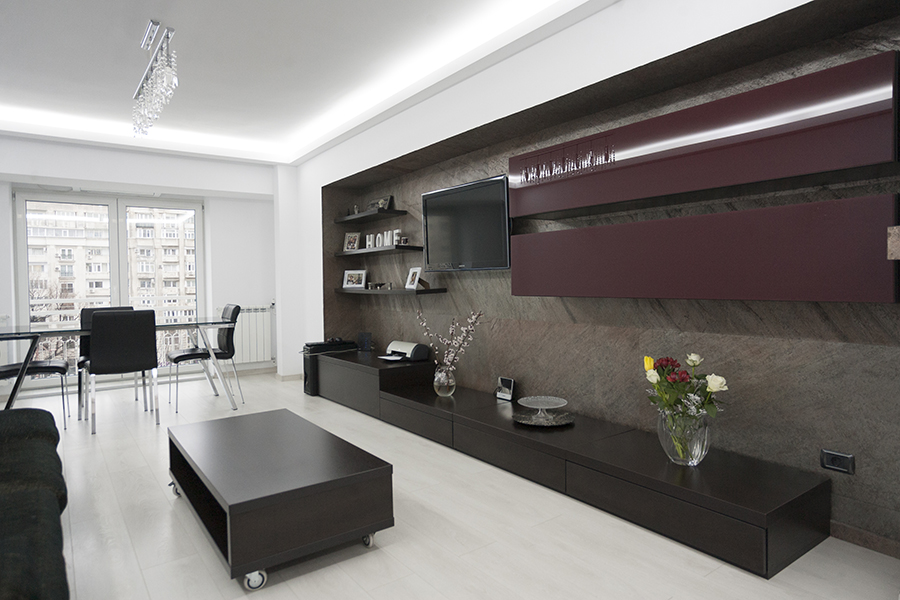 Daca iti place modelul unei biblioteci, dar nu iti place culoarea ei sau vrei sa ii oferi un stil aparte, poti da nastere unei piese cu totul speciale, folosind tapet din piatra naturala. Ardezia flexibila SKIN.