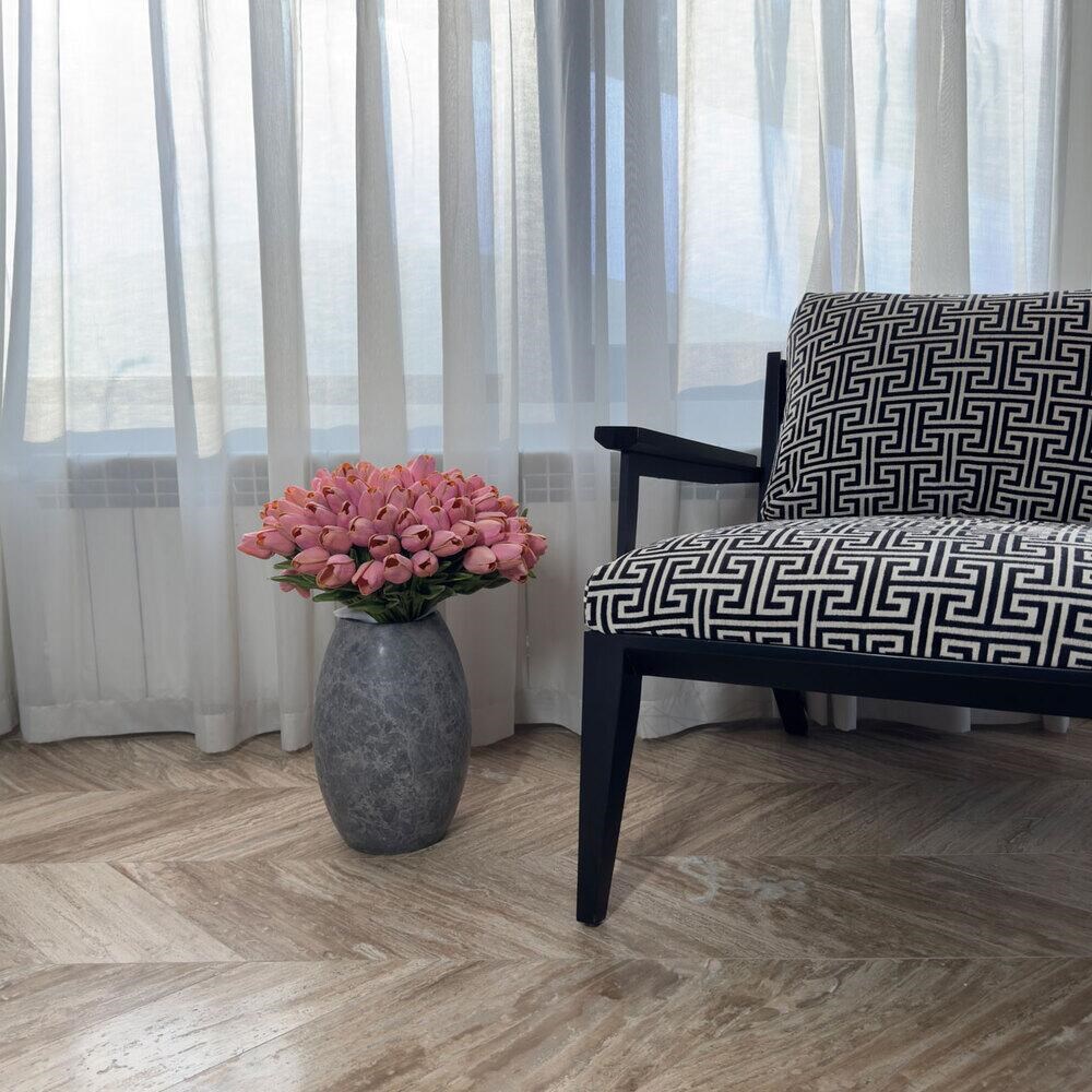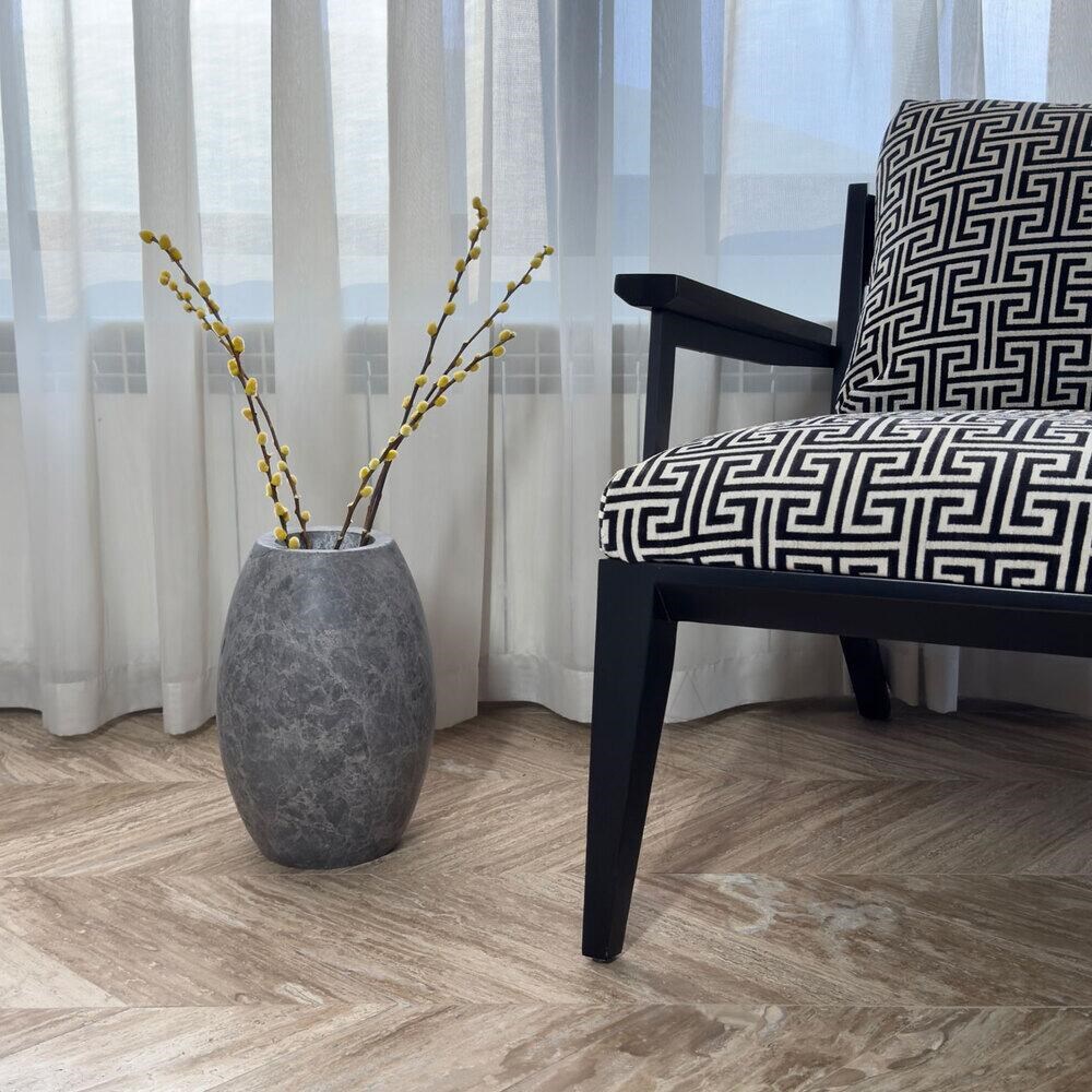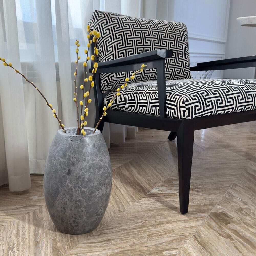 Vaza Pisa este un element de design, destinat impodobirii si personalizarii unor spatii de interior si exterior, in proiecte publice si private. Marmura Tundra s-a format prin cimentarea grohotisurilor sau a sfaramaturilor altor roci, mai dure, aspectul de pietricele inghetate incrustate in masa marmurei provenind de la sedimentele naturale care au determinat formarea in prima faza. Ulterior, supuse la temperaturi si presiuni uriase, aceste sedimente cimentate s-au transformat in structura marmurei pe care o vedem azi. Compozitia ei este preponderent calcaroasa insa contine si magnezie intr-o proportie semnificativa. Aspectul usor sticlos de aici vine. Ca urmare a modului de formare marmura Tundra are calitati speciale: