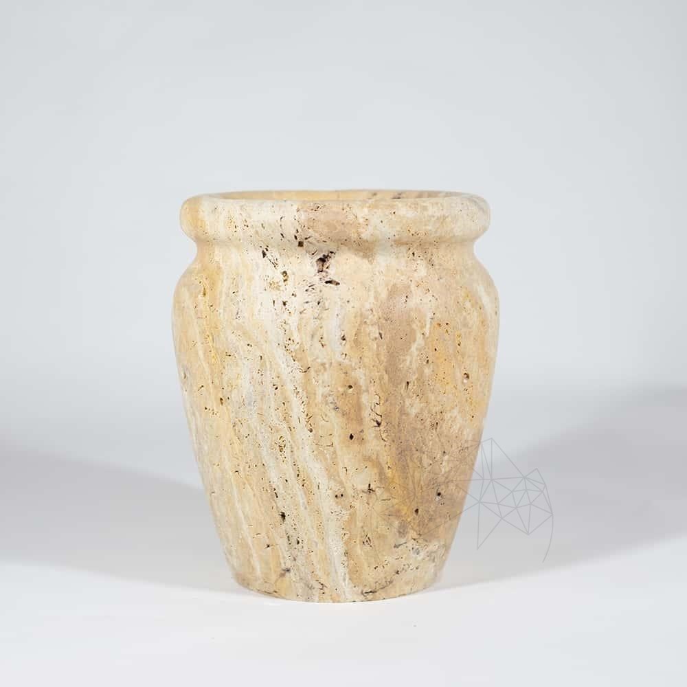 Vaza din travertin Yellow este o piesa de mare impact ce se caracterizeaza prin atractivitate, datorita designului aparte in nuante bogate. Fiind un obiect decorativ de mare impact, aceasta vaza aminteste de plajele mediteranei si de zilelel toride de vara cand soarele straluceste. Prin nuanta galbena, acesta vaza din travertin inveseleste intreaga locuinta. Aceasta vaza da o nota eleganta oricarei incaperi in care este amplasata, fie ca vorbim despre birou, de propriul camin sau de alte spatii precum restaurantele, barurile etc. Este acea pata de culoare dupa care te poti ghida in adaugarea altor accente in amenajare (perne decorative galbene, draperii in acelasi joc de nuante etc.). O combinatie unica de rafinament si jovialitate.